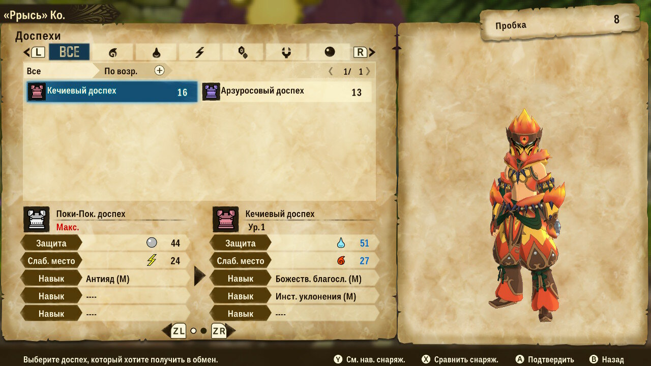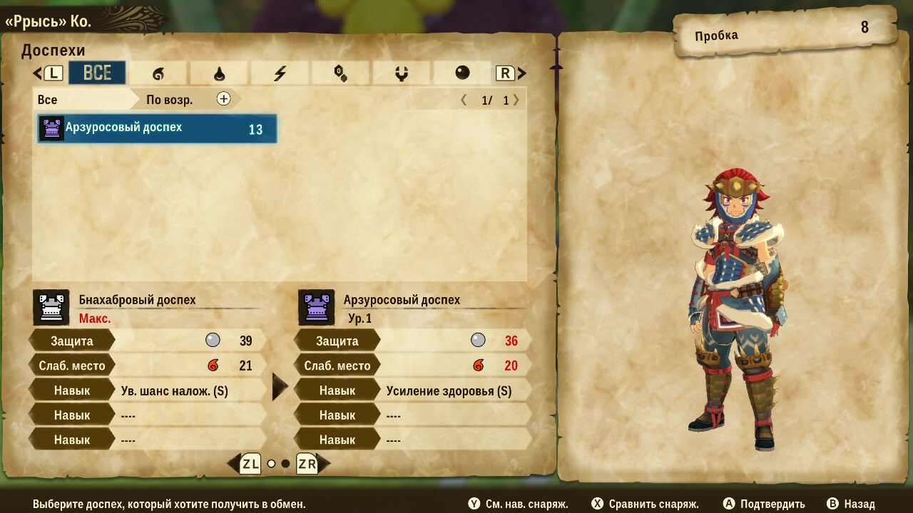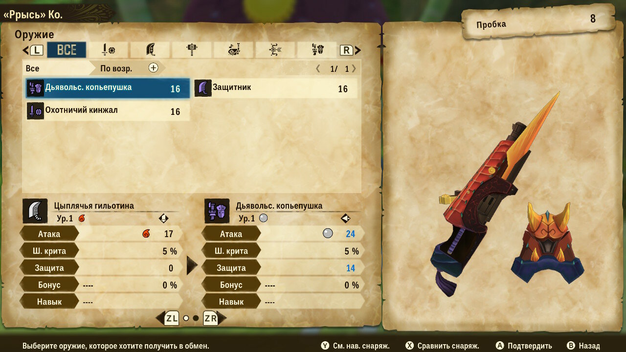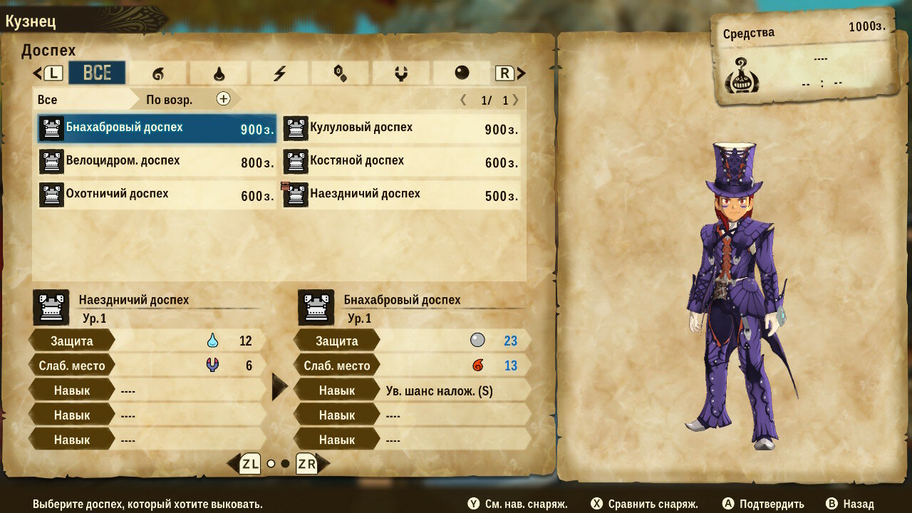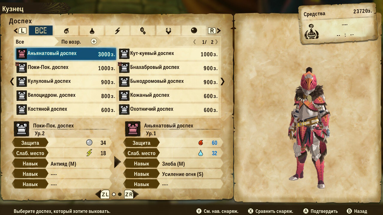 У кузнеца товар не столь интересен, сколь возможности крафта. Предлагаемый им выбор сильно уступает по характеристикам самодельному оружию или доспехам. Для крафта понадобится запастись необходимыми материалами и деньгами, но результат того стоит. Надо отдать должное разработчиками: броня выглядит симпатично, разнообразно и соответствует внешнему виду животного, с которого добываются ресурсы.