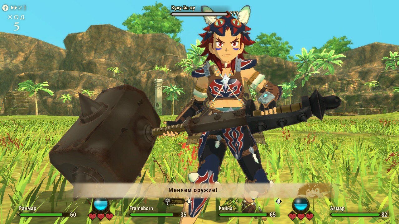 Но игра не ограничивается простым прожатием одной атаки против другой. Иногда оппоненты будут прибегать к хитростям, используя природу себе в помощь. Некоторые возьмут и защитятся огромным булыжником, который обычными атаками не пробить. В этом случае нужно будет сменить носимое оружие с колющего на дробящее.