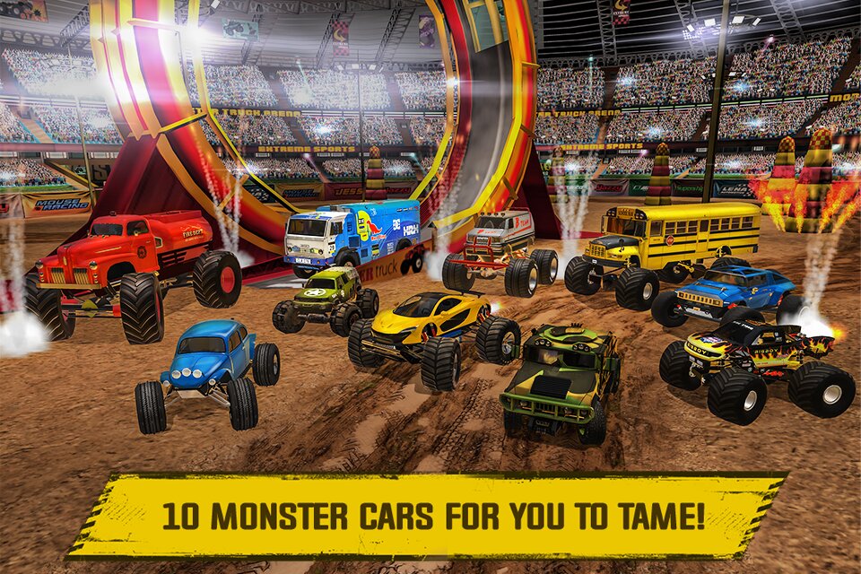 Monster Truck Arena Driver – садитесь за руль огромного внедорожника или грузовика монстра и проделывайте всевозможные трюки, гоняя по трассам игры. В этой игре вас ждут экстремальные заезды по различным трассам с множеством препятствий и преград. Давите на педаль газа и разгоняйте свой грузовик до предельной скорости проезжая по трамплинам, петлям и подлетая вверх с платформ. Выполняйте все миссии игры и получайте доступ к новым автомобилям, которые порадуют вас уникальными техническими характеристиками. Проверяйте в деле все автомобили, гоняя по трассам. Станьте лучшим в этой игре и порадуйте зрителей на трибунах головокружительными трюками.