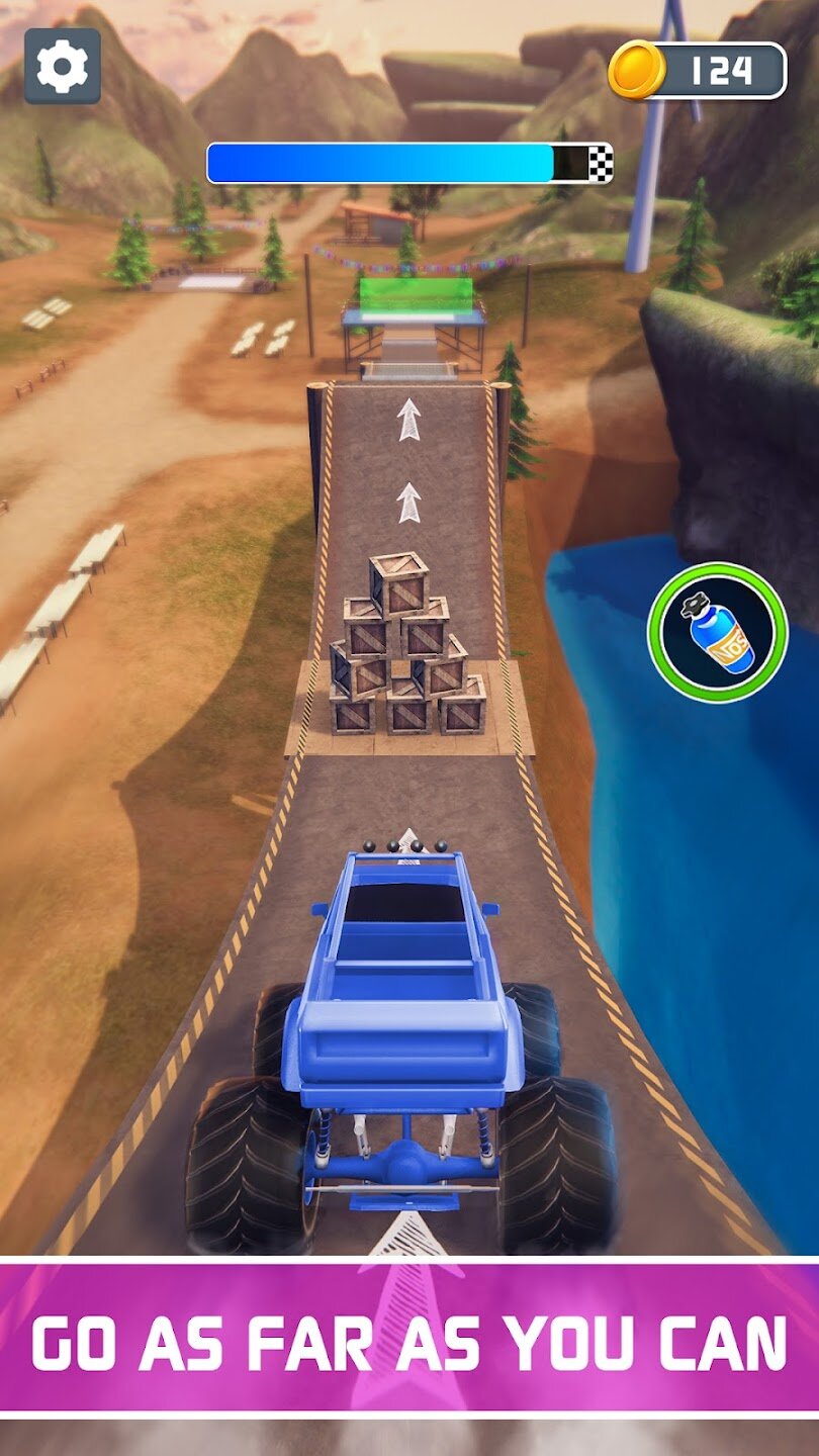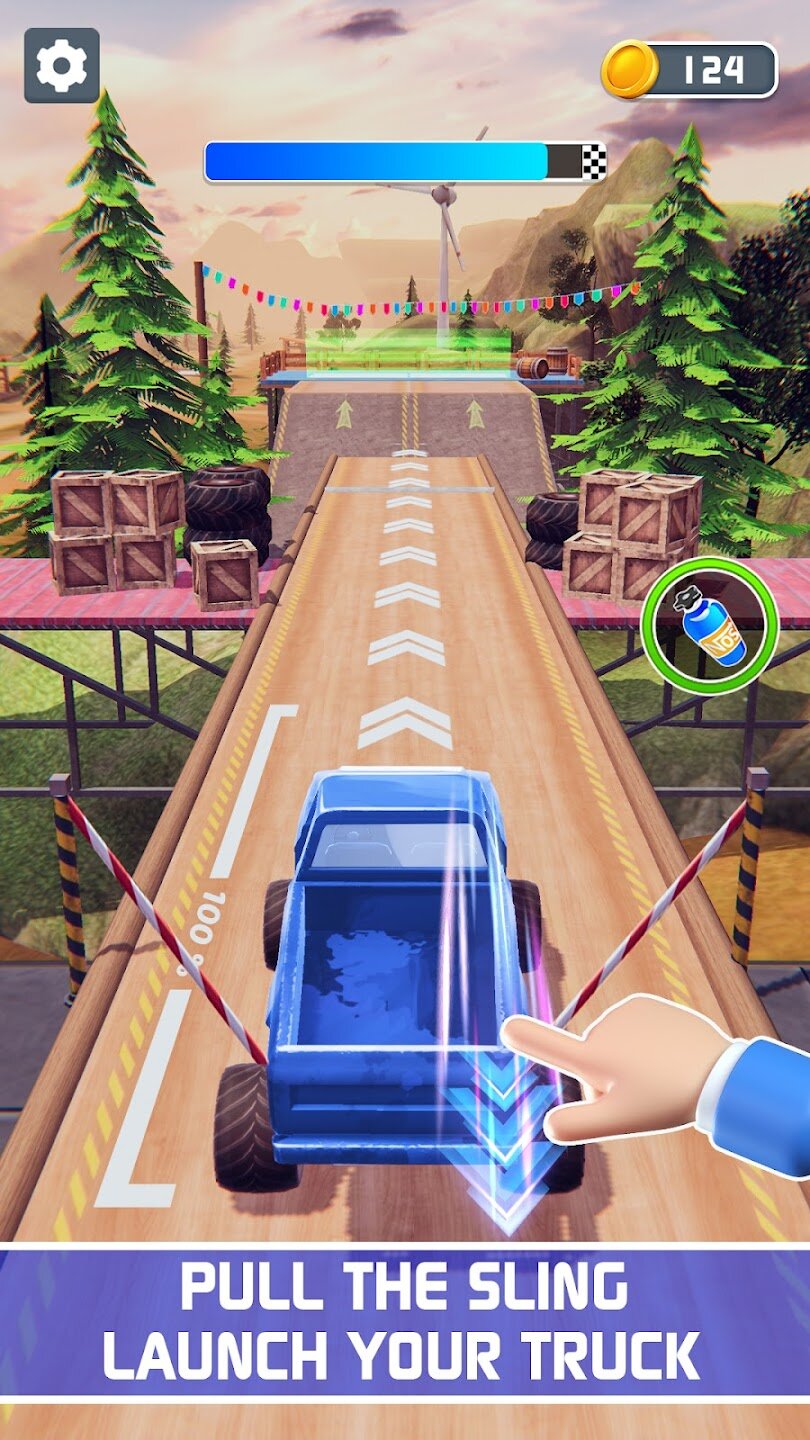 Испытайте уникальный геймплей, сочетающий элементы конструктора и аркадного экшена: оттягивайте рогатку, рассчитывайте силу и угол броска, чтобы отправить свой монстр-трак в эпический полёт. Чем дальше вы пролетите, тем больше монет заработаете для апгрейда двигателя, колёс и прочности кузова.