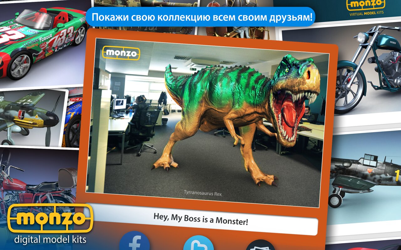 Monzo — крась, обклеивай, фотографируй, делись лучшими модели от производителя Revell. Monzo позволит тебе получить твои реальные модели «Revell» в цифровом формате и оснастить их дизайном, отражающим силу твоей изобретательности. Делиться моделями через социальные сети очень просто, и это даст тебе возможность похвастаться своей коллекцией «Revell» перед друзьями.