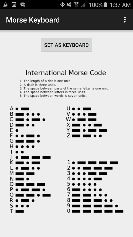 Если вы всерьез заинтересовались морзянкой и хотите изучить эту азбуку кодирования, то вам также стоит обратить внимание на недавнее приложение Morse Keyboard, которое представляет собой простейшую клавиатуру со знаками азбуки Морзе вместо обычных букв.