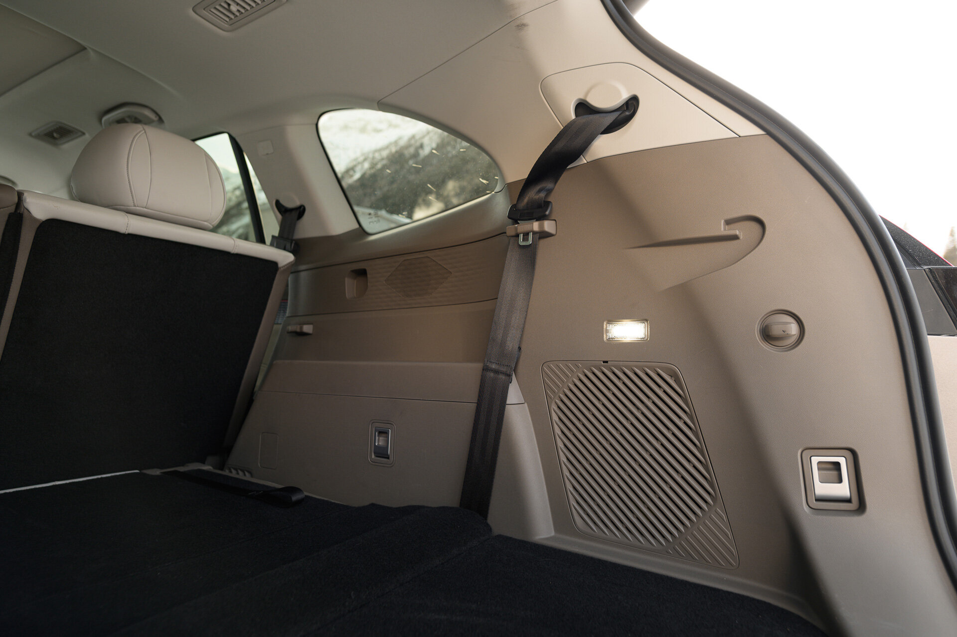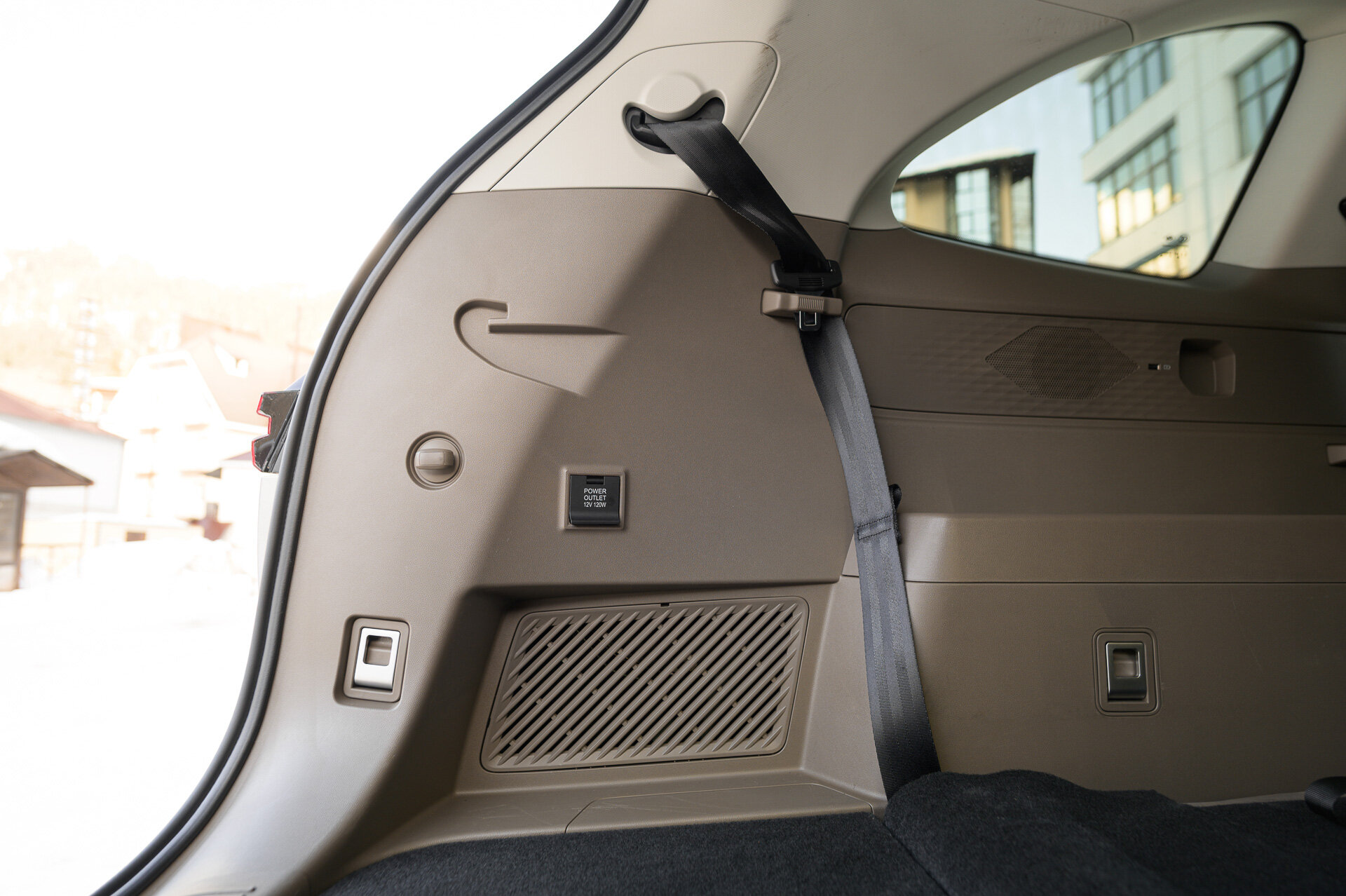 В наличии: розетка прикуривателя, петли для организации перевозки багажа, шторка (лежит в подполе) и удобные фиксаторы для ремней безопасности, если у вас нет пассажиров. Ах да, лампочка одна и справа (у М70 была слева…).