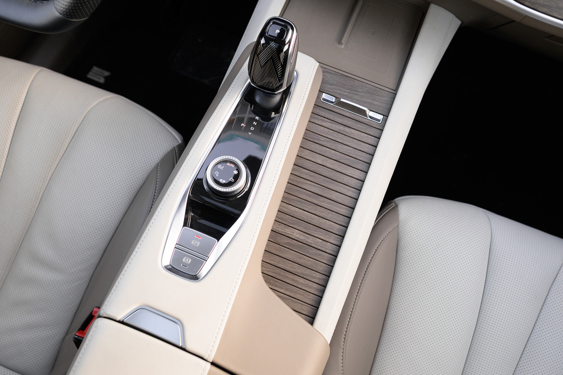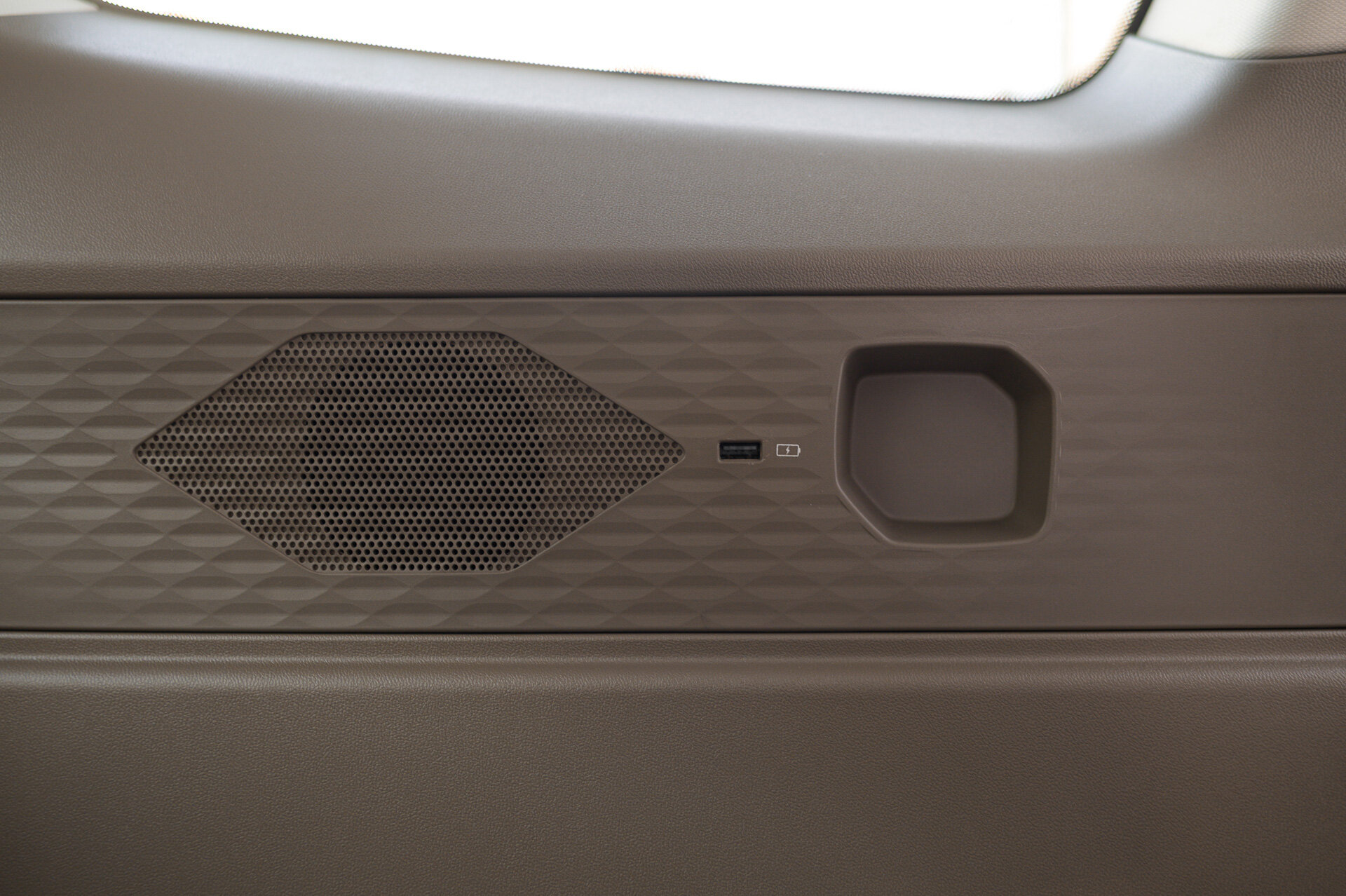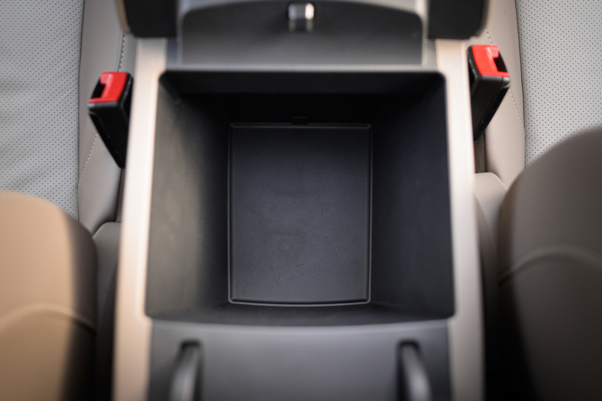 Во-первых, фиксаторы тары переехали подальше от разъёмов (те и вовсе на нижнем ярусе) и теперь прячутся под сдвижной шторкой. Во-вторых, появилась зарядка смартфона, правда, только одного и со стороны пассажира.