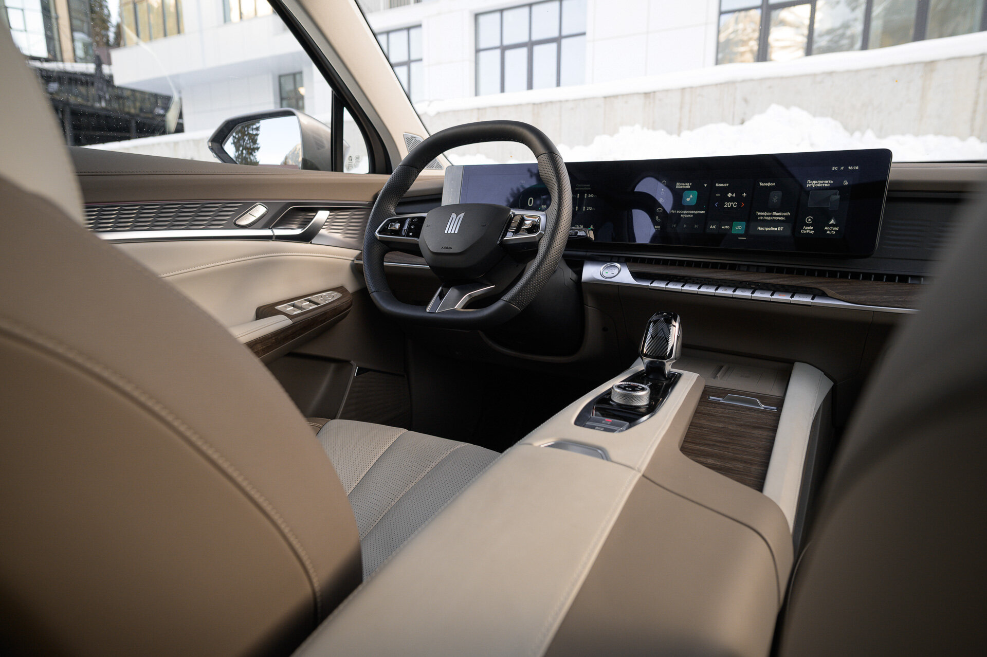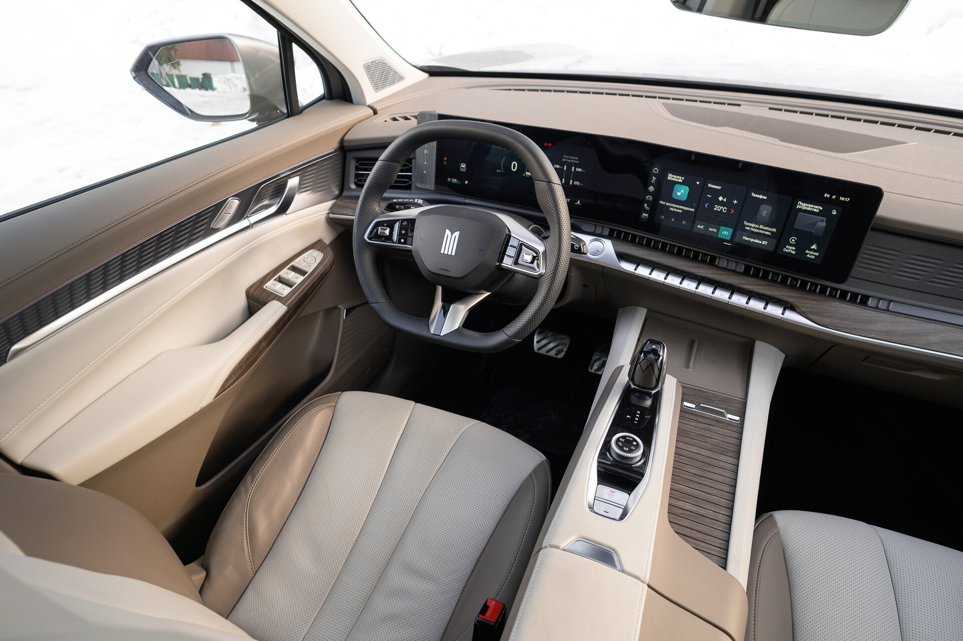 Вы, я думаю, уже обратили внимание, что М90 мне достался с бежевым салоном в двух оттенках. Определённо лайк! Хоть материалы здесь те же, что и у чёрного исполнения, но выглядит оно, как по мне, приятнее и дороже. Ещё из наблюдений: у песчано-коричневой версии вставки все матовые, а у чёрной — глянцевые. Как принято нынче писать в сети: «Думайте!».