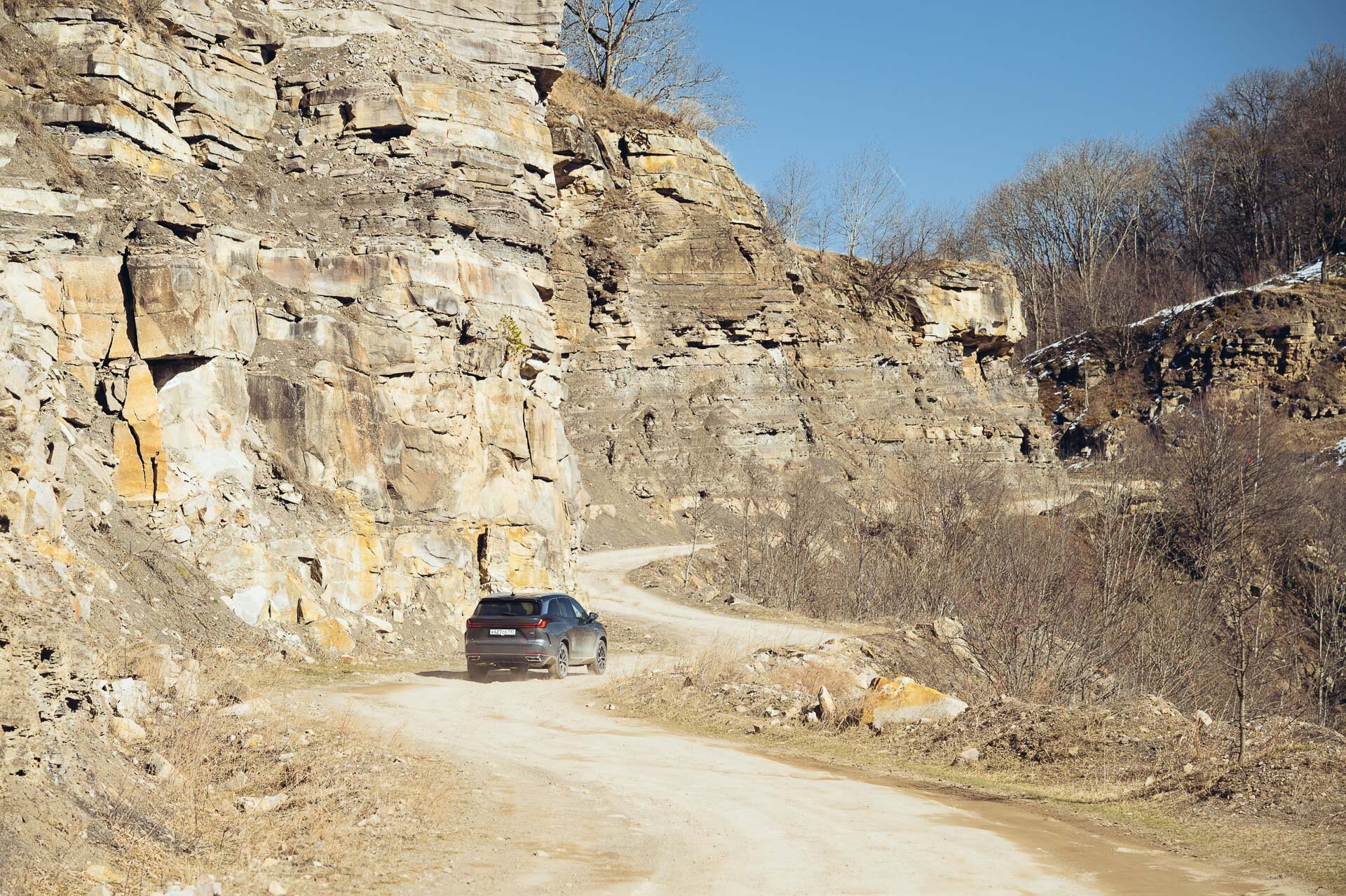 К слову, клиренс у автомобиля 190 миллиметров, так что, покидая асфальт и видя перед собой камушки, мы больше переживали за резину и диски, чем за днище и шанс что-то чиркануть.