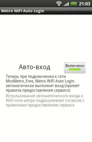 MosMetro Wifi Auto Login — с каждым месяцем количество станций и веток метро пополняются бесплатным wi-fi. Однако для того что бы напрямую зайти в свои любимые сети, вам необходимо для начала открыть свой браузер и нажимать из раза в раз кнопку входа в интернет. Эта программа даст вам возможность пользоваться интернетом, сразу после того, как ваше мобильное устройство поймает сеть и это очень удобно. Русский язык: да