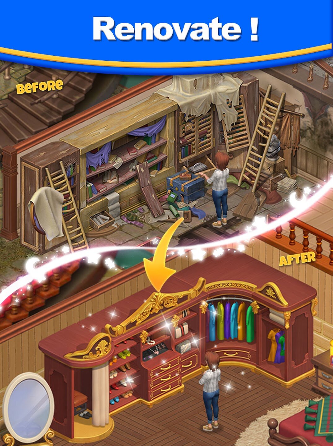 Погрузитесь в трогательную историю Сары, которая стремится восстановить семейный особняк, чтобы воссоединиться с дочерью. Преодолевайте красочные уровни, объединяя одинаковые элементы, чтобы зарабатывать ресурсы для ремонта. Каждая решенная головоломка приближает вас к преображению заброшенных комнат в уютные уголки, наполненные теплом и воспоминаниями.