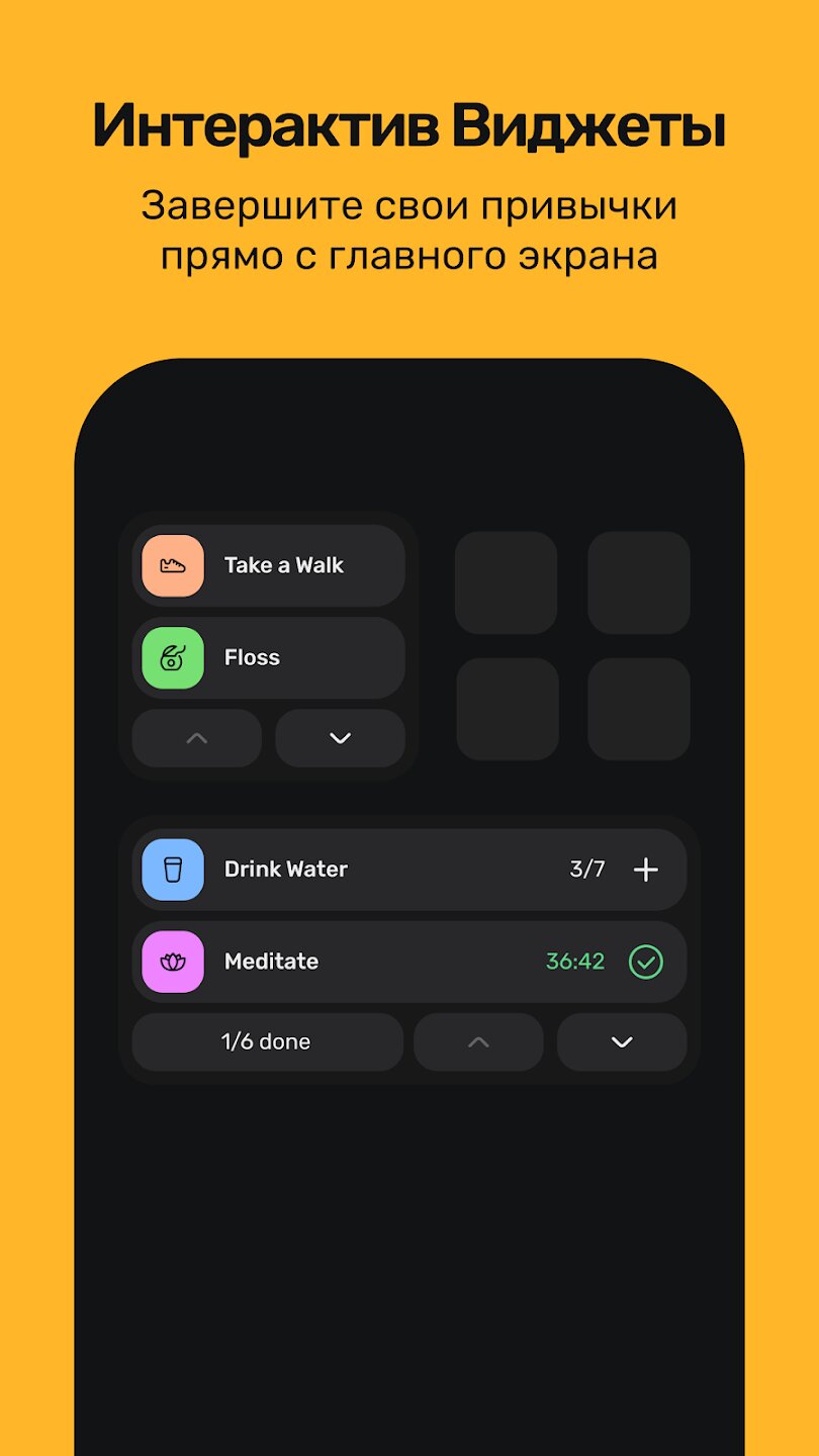 Приложение делает акцент на качестве выполнения привычек, а не на механическом отслеживании цепочек. Инновационный Habit Strength Meter оценивает вашу вовлеченность и прогресс, помогая сохранять мотивацию даже после случайных пропусков. Гибкая система позволяет адаптировать трекинг под индивидуальные цели без потери статистики.
