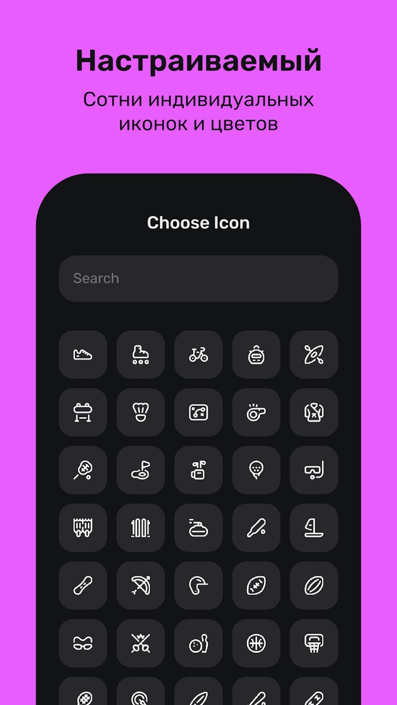 Motivated предлагает глубокую аналитику вашего прогресса с детализированной статистикой и удобными виджетами. Более 550 настраиваемых иконок и цветовых схем помогают персонализировать трекер, а текстовые заметки с форматированием превращают его в многофункциональный органайзер личного роста.