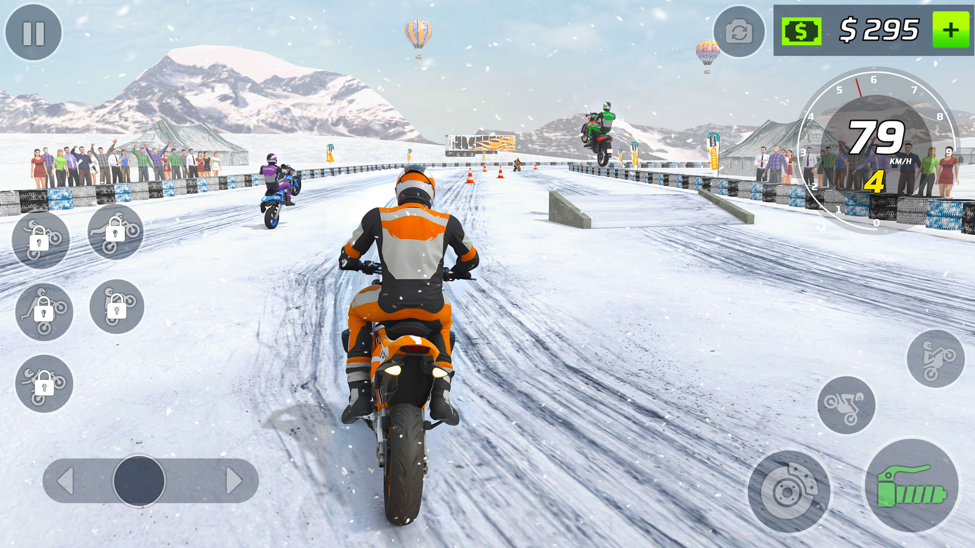 - Реалистичная физика управления мотоциклом и плавная механика вилли.