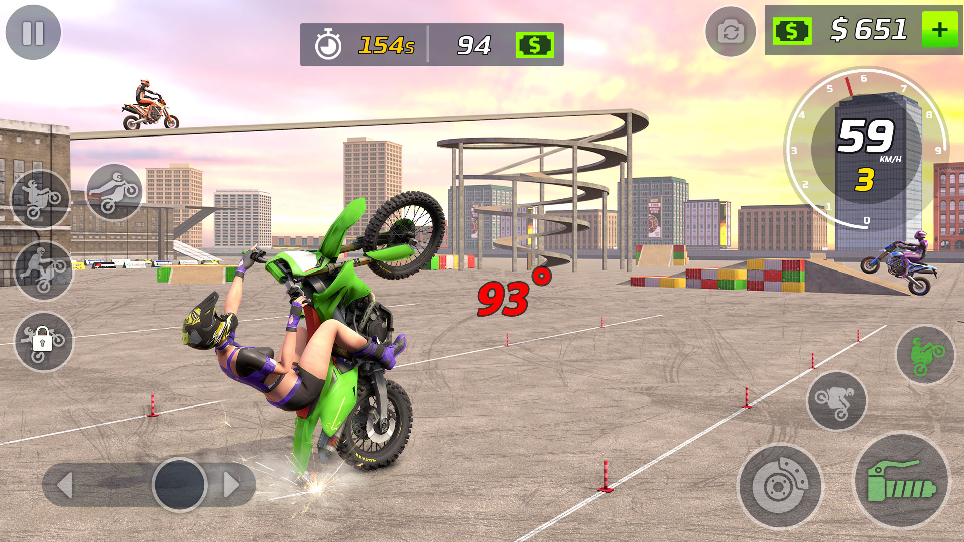 - Игровой процесс, основанный на навыках, разработанный для любителей мотоциклов и трюков.
