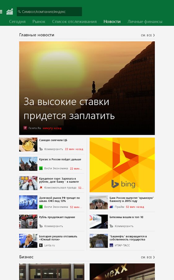 Просто о финансах. Узнайте больше о своих финансах, используя финансовые данные и новости из лучших в мире источников. Увеличьте капитал с помощью удобных инструментов и калькуляторов в любое время и в любом месте.