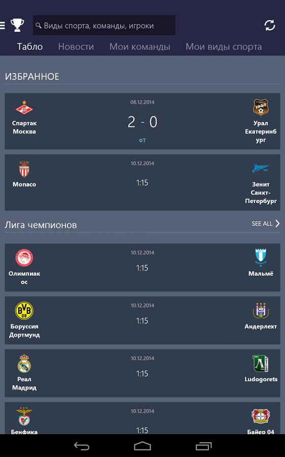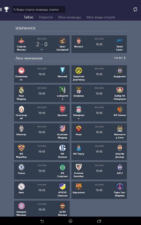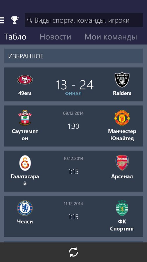 - ИСЧЕРПЫВАЮЩИЕ ДАННЫЕ. Получите доступ более чем к 150 лигам и тысячам команд, включая НФЛ, НБА, MLB, НХЛ, NCAA, MLS, PGA, NASCAR, Формулу 1, команды по крикету, теннису, футболу и многие другие. Получайте последнюю информацию об очках, просматривайте турнирные таблицы, расписание и многое другое.