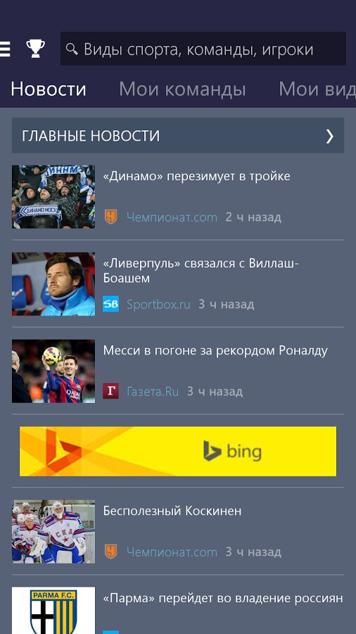- ПРОСТАЯ НАВИГАЦИЯ. Проведите по экрану влево или вправо, чтобы перейти к следующей статье. Коснитесь меню, чтобы просмотреть слайдшоу, видео и информацию о популярных атлетах.