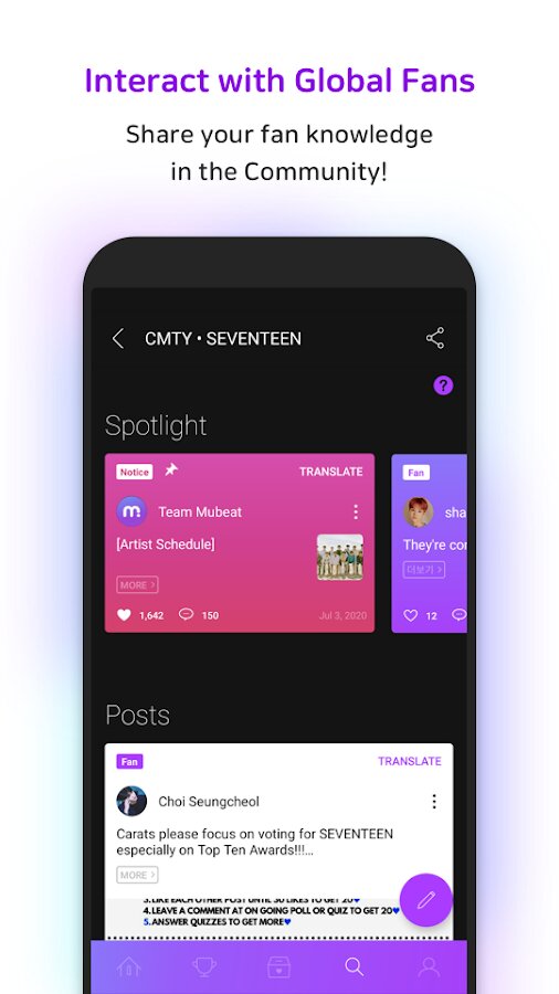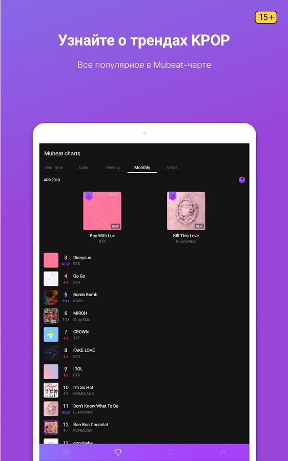 Другие примечательные особенности Mubeat включают графики в реальном времени и обновления новостей, что делает его идеальным приложением для поклонников kpop, которые хотят оставаться в курсе событий и быть на связи с сообществом Kpop.