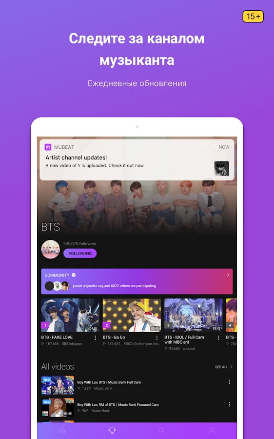 С Mubeat вы можете быть в курсе последних релизов ведущих кпоп-групп, таких как BTS, BLACKPINK, TWICE и других. Приложение предлагает подборку музыкальных клипов, танцевальных практик и живых выступлений, чтобы вы могли наслаждаться высококачественным контентом от ваших любимых артистов в одном удобном месте.