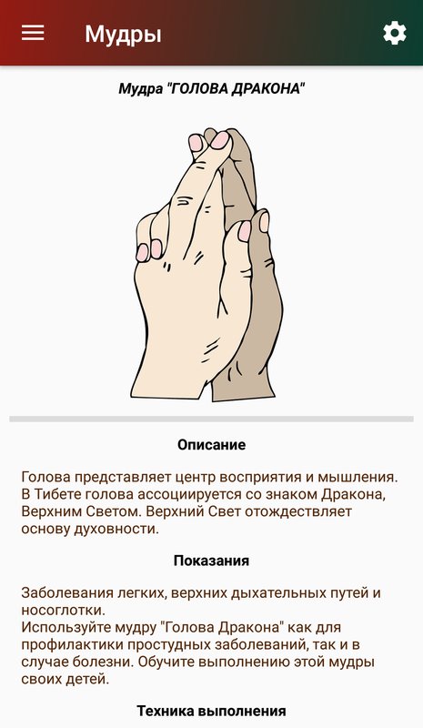 В приложении собрано и систематизировано много информации из различных источников. Рассмотрены следующие вопросы: происхождение мудр, практика и эффект от практики, техника выполнения, связь мудр с первоэлементами вселенной, медитация и методы медитации, мантры и правильное дыхание, техника визуализации и многое другое.