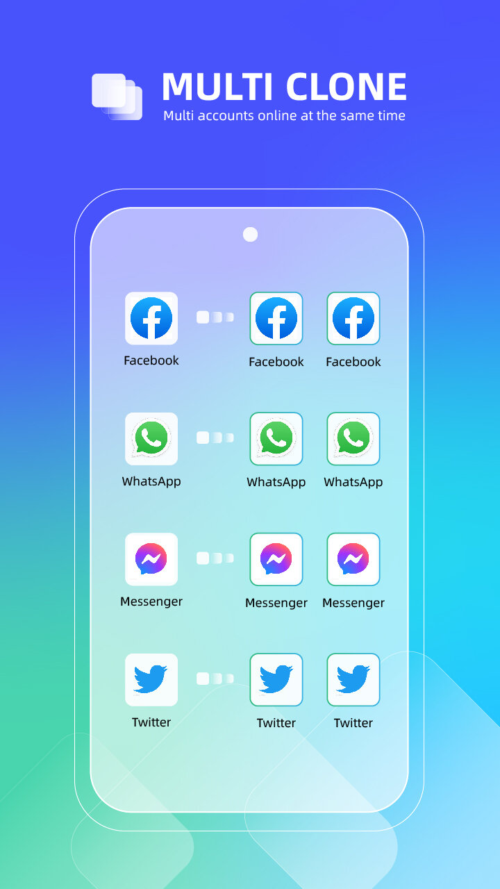 Это мощное приложение позволяет клонировать и запускать несколько экземпляров ваших любимых социальных сетей, мессенджеров и мобильных игр одновременно. Если вам нужны отдельные учетные записи для работы и личного использования или вы хотите поддерживать несколько игровых профилей, Multi App создает изолированные среды, которые полностью разделяют ваши данные. Интерфейс приложения очень интуитивен, что позволяет настраивать клонированные приложения всего несколькими нажатиями, сохраняя при этом оптимальную производительность во всех экземплярах.