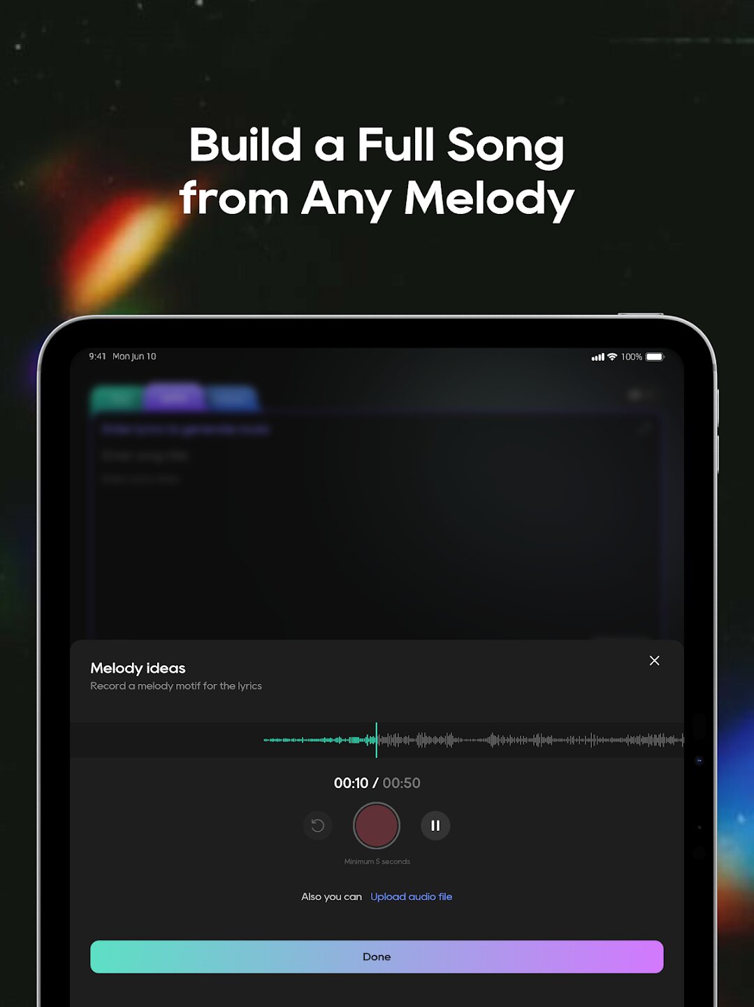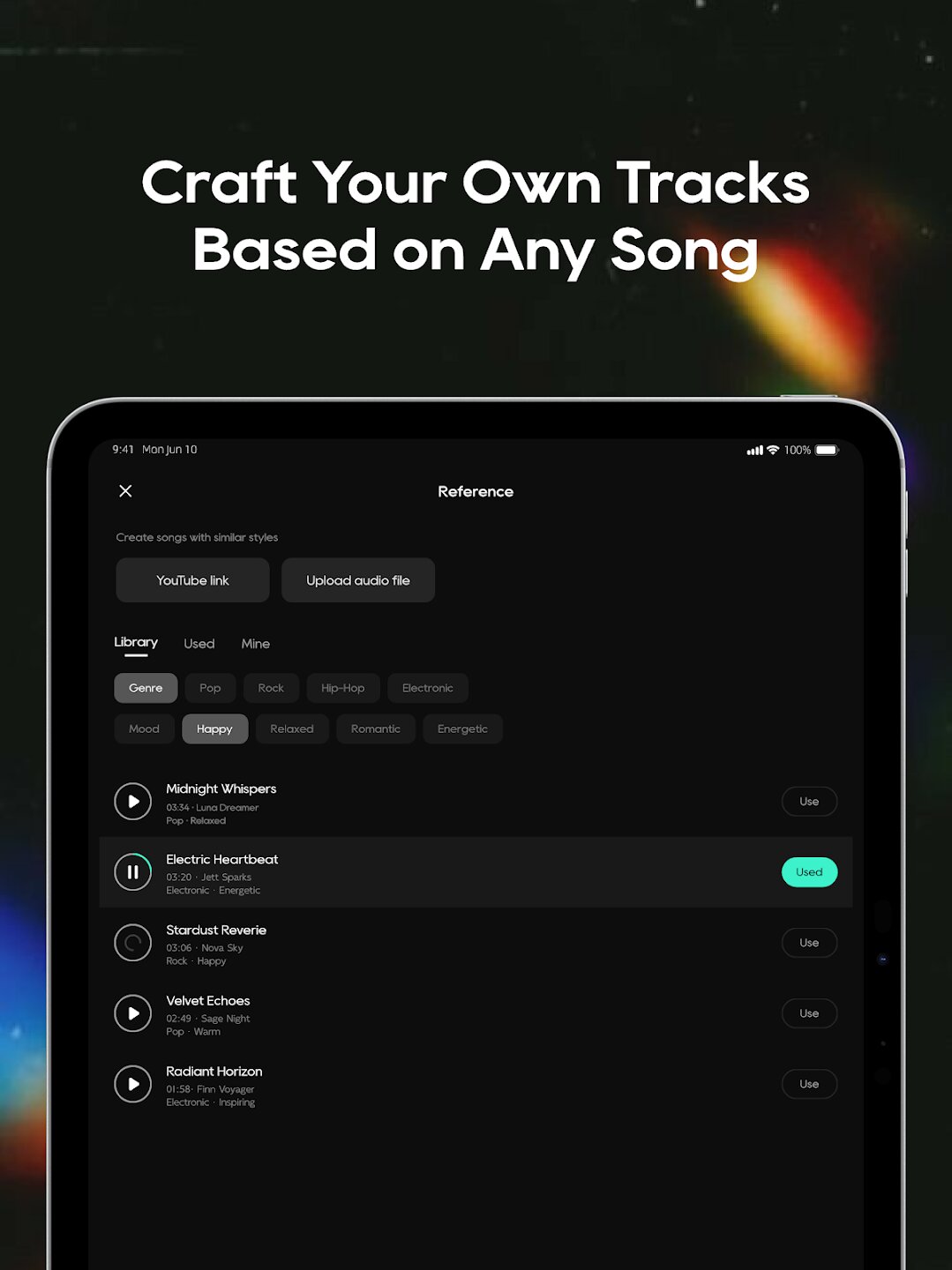 - Генерация треков в 10+ музыкальных жанрах