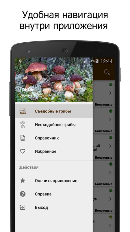 Грибы — полезное приложение, содержащее в себе подробное описание наиболее известных съедобных, несъедобных и ядовитых грибов, произрастающих на территории России и ближнего зарубежья. Оно будет полезно как начинающим грибникам, так и опытным любителям тихой охоты.