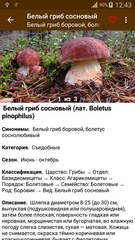 Описание каждого вида грибов содержит 3 цветные фотографии в высоком разрешении.