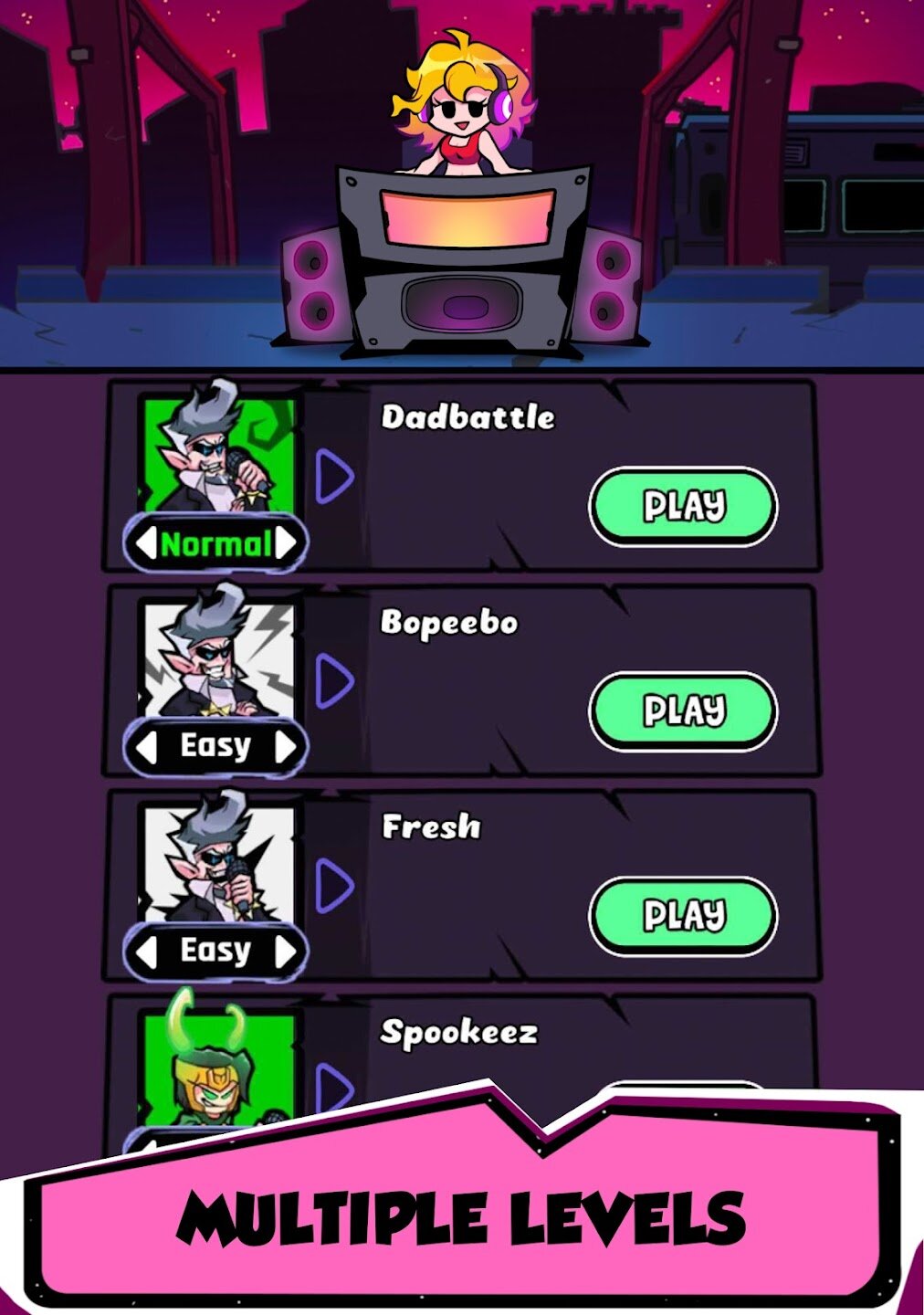 - Разнообразные популярные песни с атмосферой FNF и запоминающимися треками.