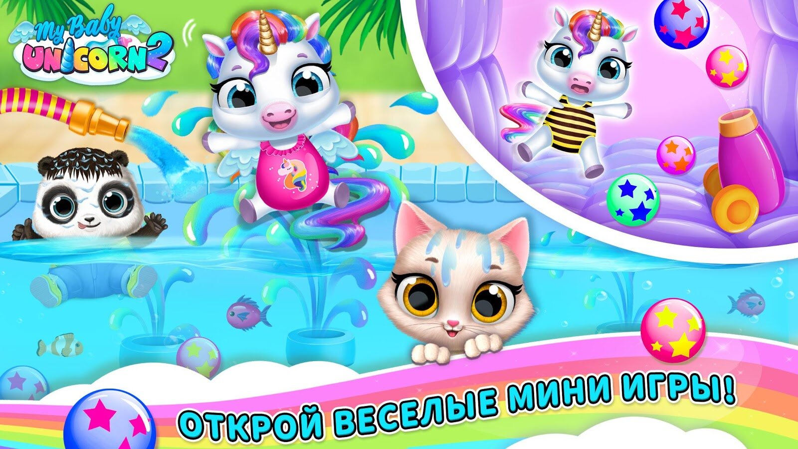My Baby Unicorn 2 — идеальная игра для девочек и мальчиком, которые любят пони, виртуальных питомцев и сюрпризы.