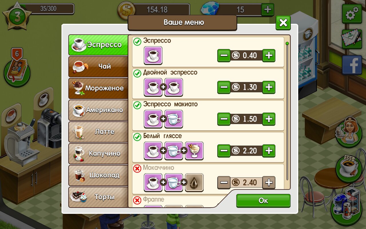 - 🛋 Украшайте свою кофейню. Проявите свои дизайнерские способности и оформите кофейню по своему вкусу. Подберите стильную мебель, цвет стен и фасад ресторана, чтобы ваша кофейня стала еще привлекательнее.