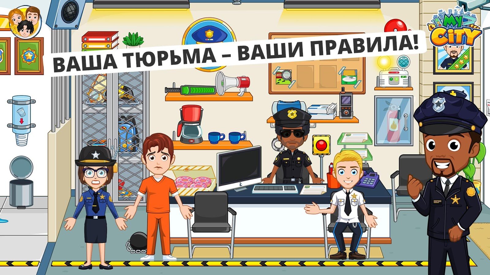 My Сity: тюрьма – открыта и ее можно осмотреть. Вам когда-нибудь было интересно, как выглядит тюрьма? Теперь вы можете это узнать! Играйте надзирателем, утихомрьте преступников и помогите им исправиться. Откройте двери, сходите во двор прогулок, решите головоломки и следите за тем, чтобы хитрые уголовники не сбежали. Это интересная и захватывающая игра! Придумывайте собственные приключения и новые истории каждый день!