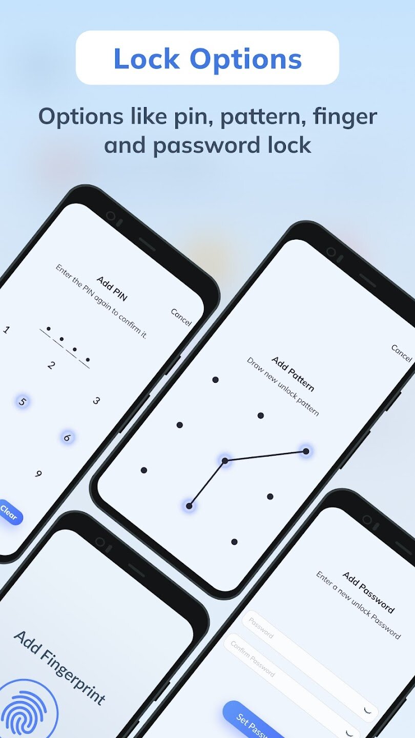 - Несколько типов блокировки (PIN-код, графический ключ, пароль) с одним главным паролем.