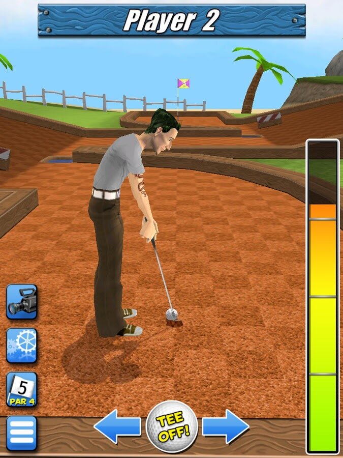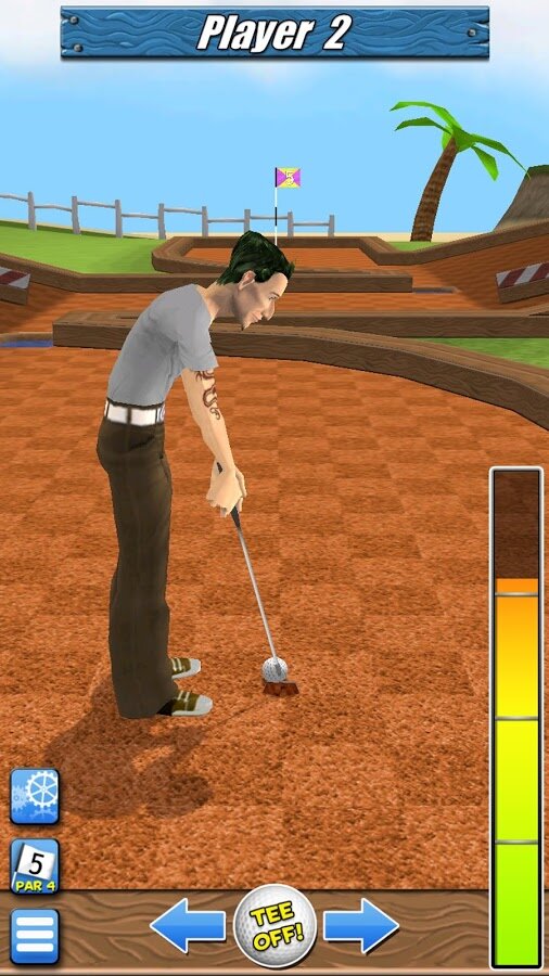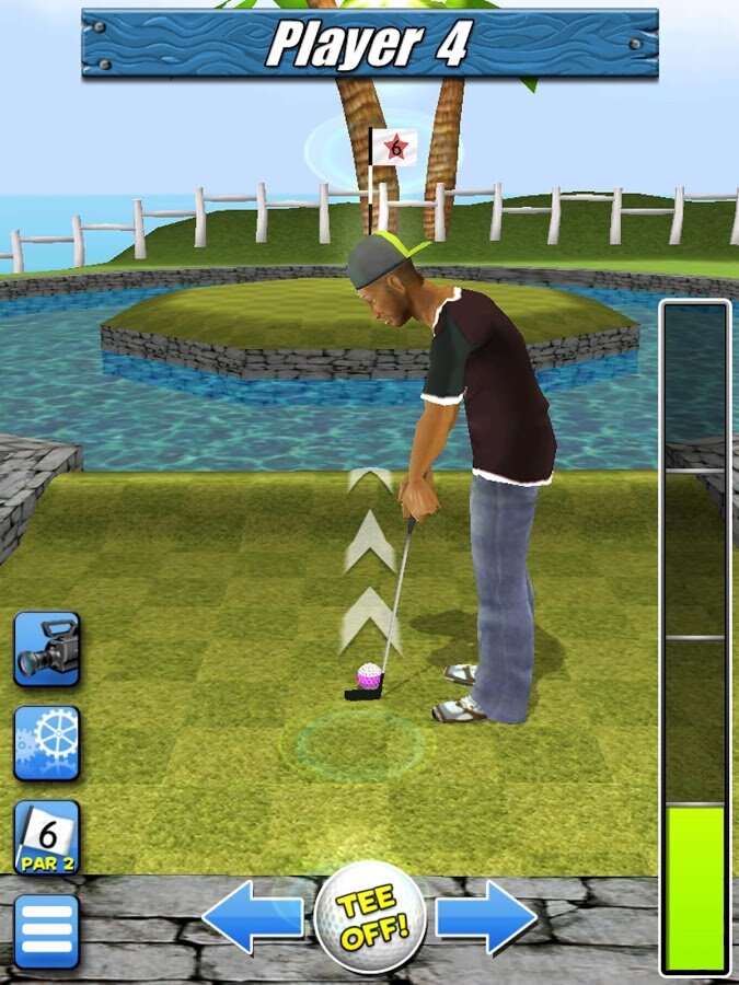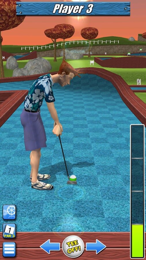 My Golf 3D — отличный трехмерный мини гольф на Android. Выберите себе героя и вступайте в чемпионаты среди двадцати семи уникальных уровней. В игре четкая физика, которая полностью повторяет движения настоящего мяча. В игре пять уровней сложности соперников, от новичка до настоящего профессионала. Так же в игре вы сможете добиться до десяти различных достижений.