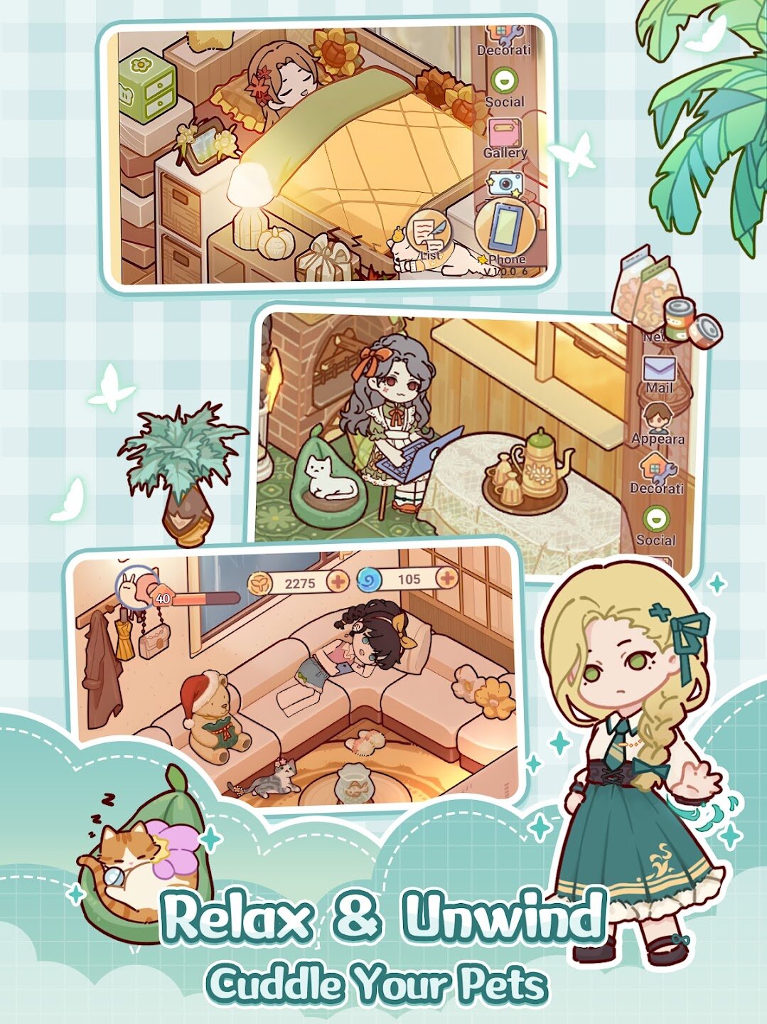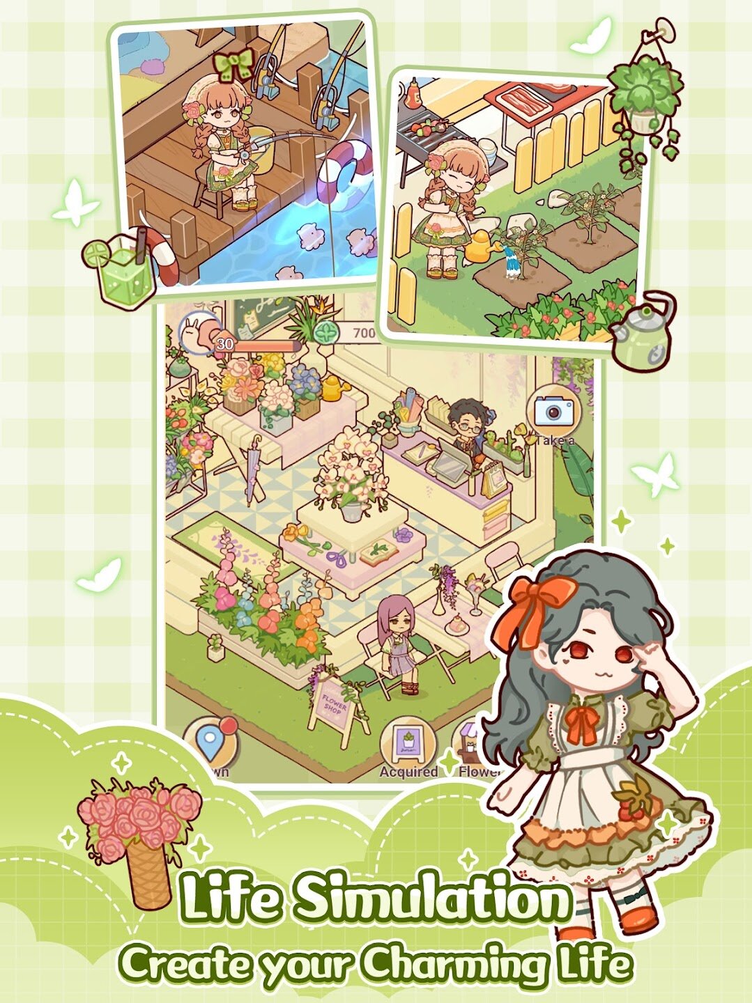 - Расслабляющие мини-игры и городские развлечения, такие как рыбалка, приготовление еды и аранжировка цветов.