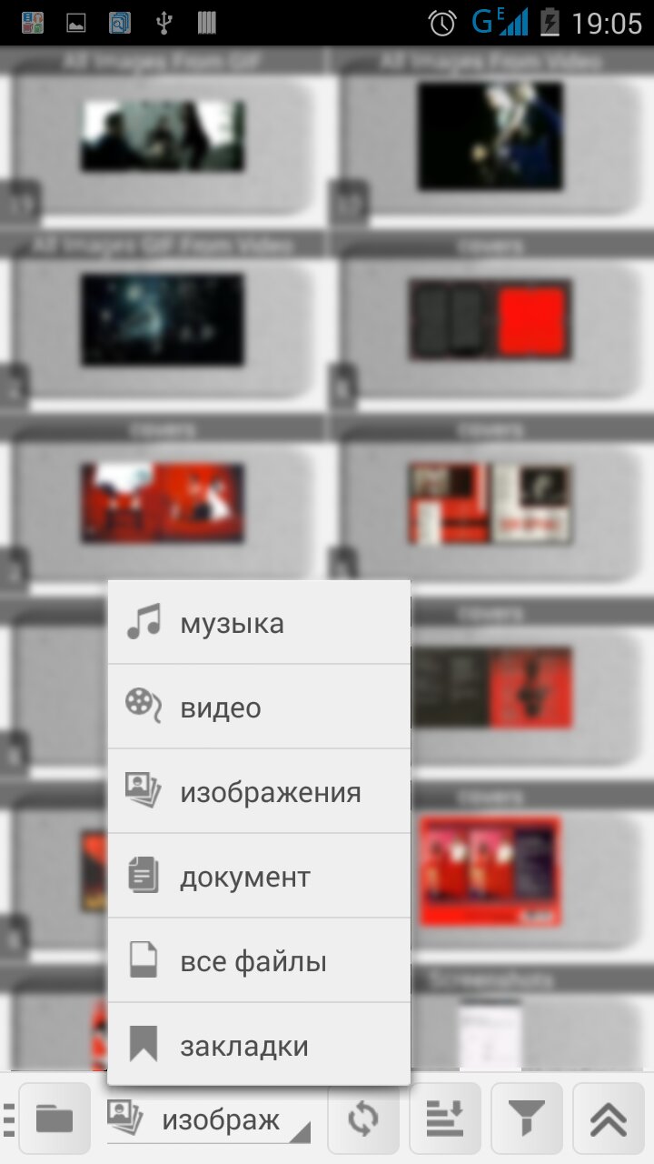 — Все разбито по категориям: музыка, видео, изображения, документ, все файлы.