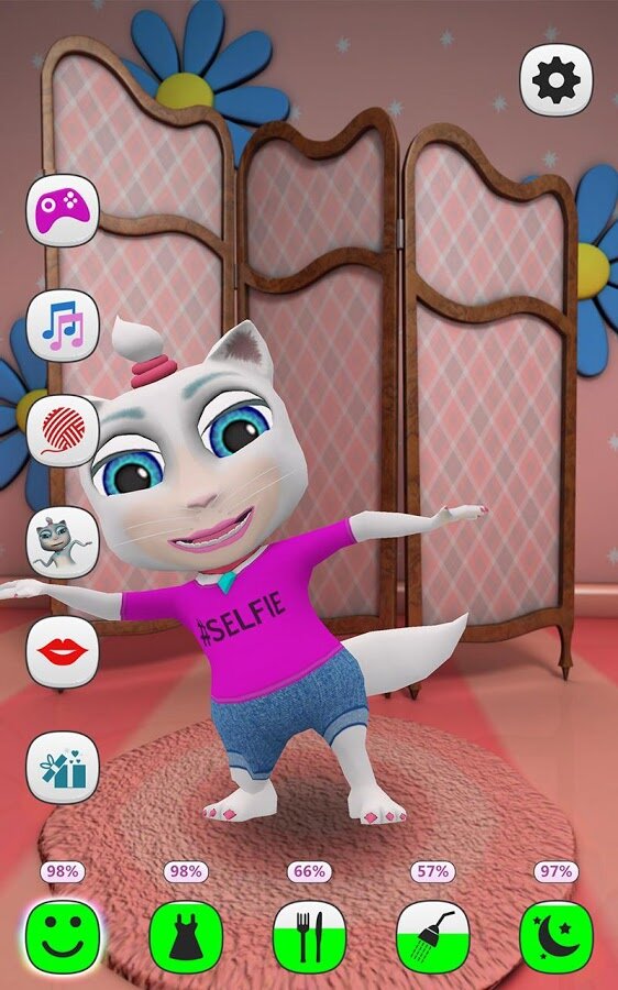 Говорящая кошка это виртуальный питомец о котором вы всегда мечтали! Вы должны будете кормить его, укладывать спать и купать котенка в ванной. Но больше всего он будет просить, чтобы вы играли с ним! Если вам нравиться другие игры с говорящими животными, такие как говорящий кот или говорящая собака, вы, безусловно, будете довольны своим новым виртуальным другом. Это игра для мальчиков и девочек добавит больше смеха в вашу жизнь. Скачать Мой Говорящий Кот и поприветствовать вашего забавного кота!