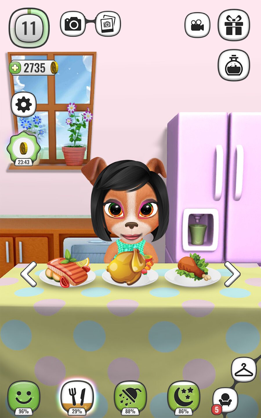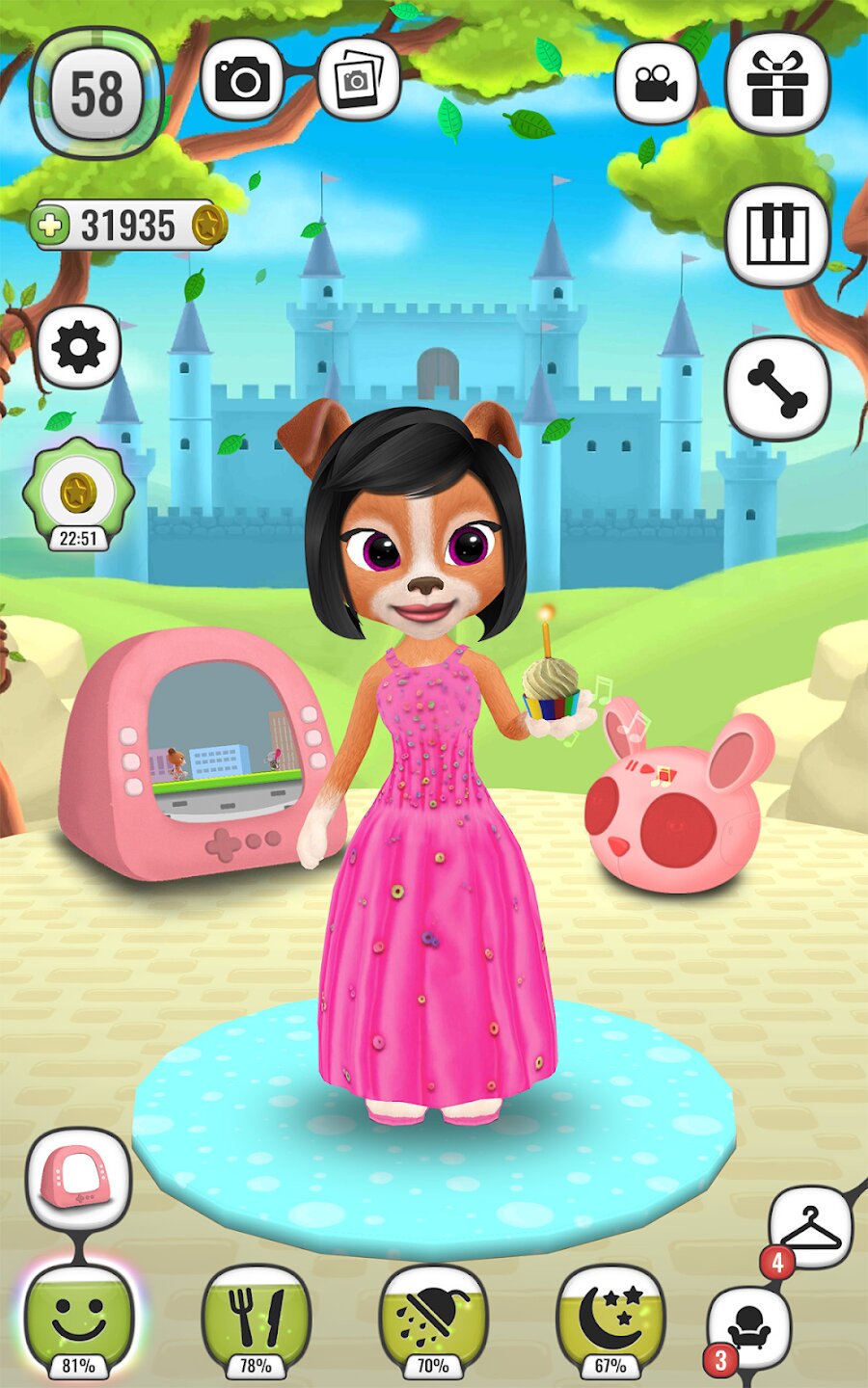 Говорящий пес — виртуальный питомец, которого можете заставить выглядеть так, как Вы хотите. Выберите любимый наряд, одежду и мебелеь и все остальное в комнате. Выберите кличку для собачки: пусть Ваш говорящий щенок получит самую интересную кличку.