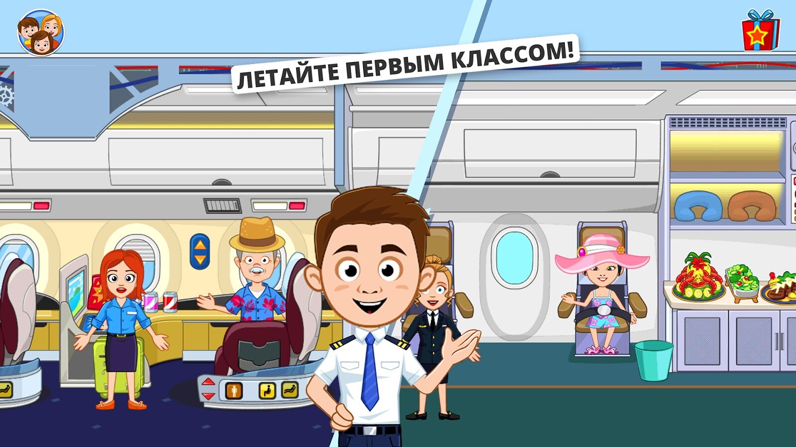 Отправляйтесь в путешествие с НОВОЙ игрой My Town: аэропорт! Покупайте билеты и — вот СЮРПРИЗ! Вы в первом классе! Мы уверены, что пилот вас заметит и пригласит в свою кабину! Что происходит? Он предлагает научить вас управлять самолетом? ОГО! Может, у вас даже получится заглянуть в магазин беспошлинной торговли до прохождения контроля!