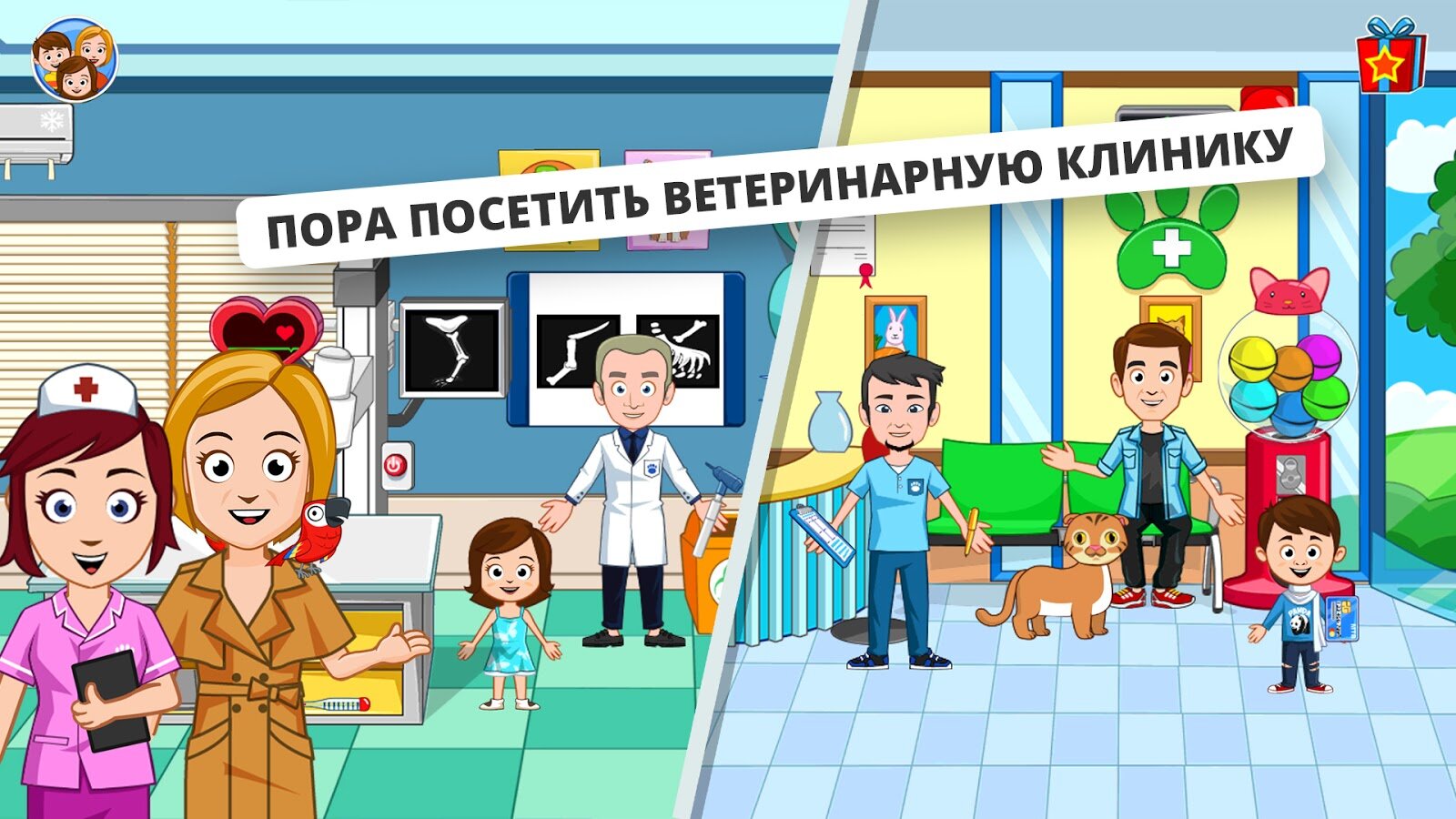 В My City: Pets есть все необходимое для ухода за вашим питомцем. Играйте с кошками, собаками, птицами и хомяками. Представьте себе, что вы берете собаку, наряжаете ее и открываете для себя все секретные и популярные места. Попробуйте прогуляться по детской площадке для собак в парке, только не забудьте убрать какашку. Мойте животных и лечите их, если они пострадали, в ветеринарной клинике. Открывайте все возможные локации и придумывайте свою историю для каждого игрового сюжета.