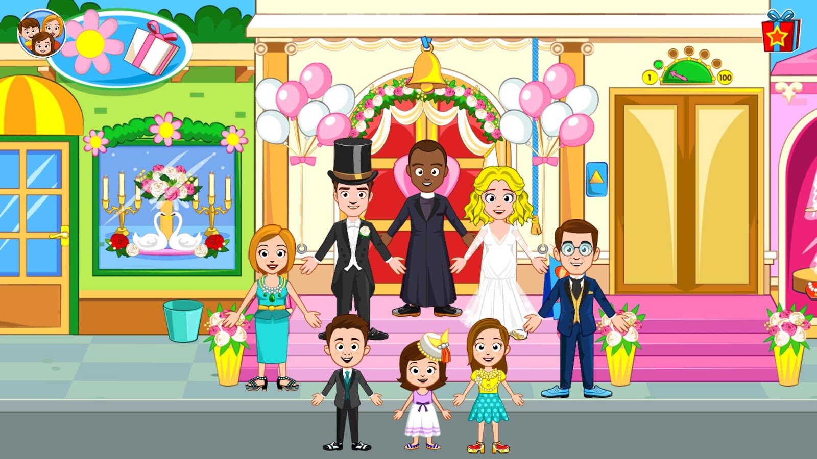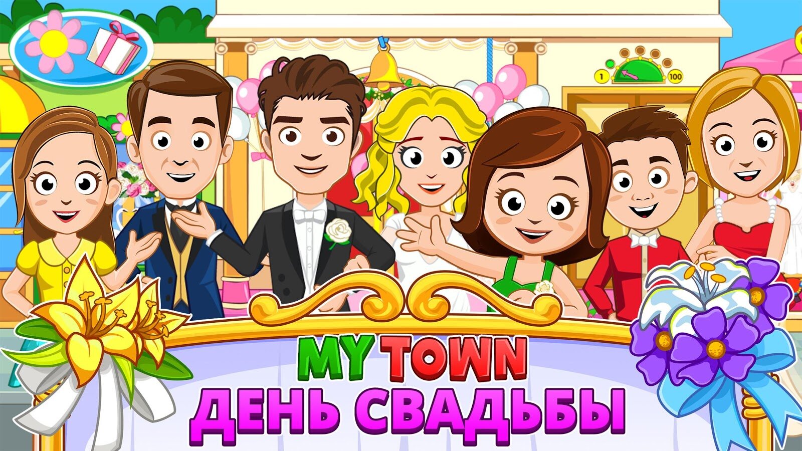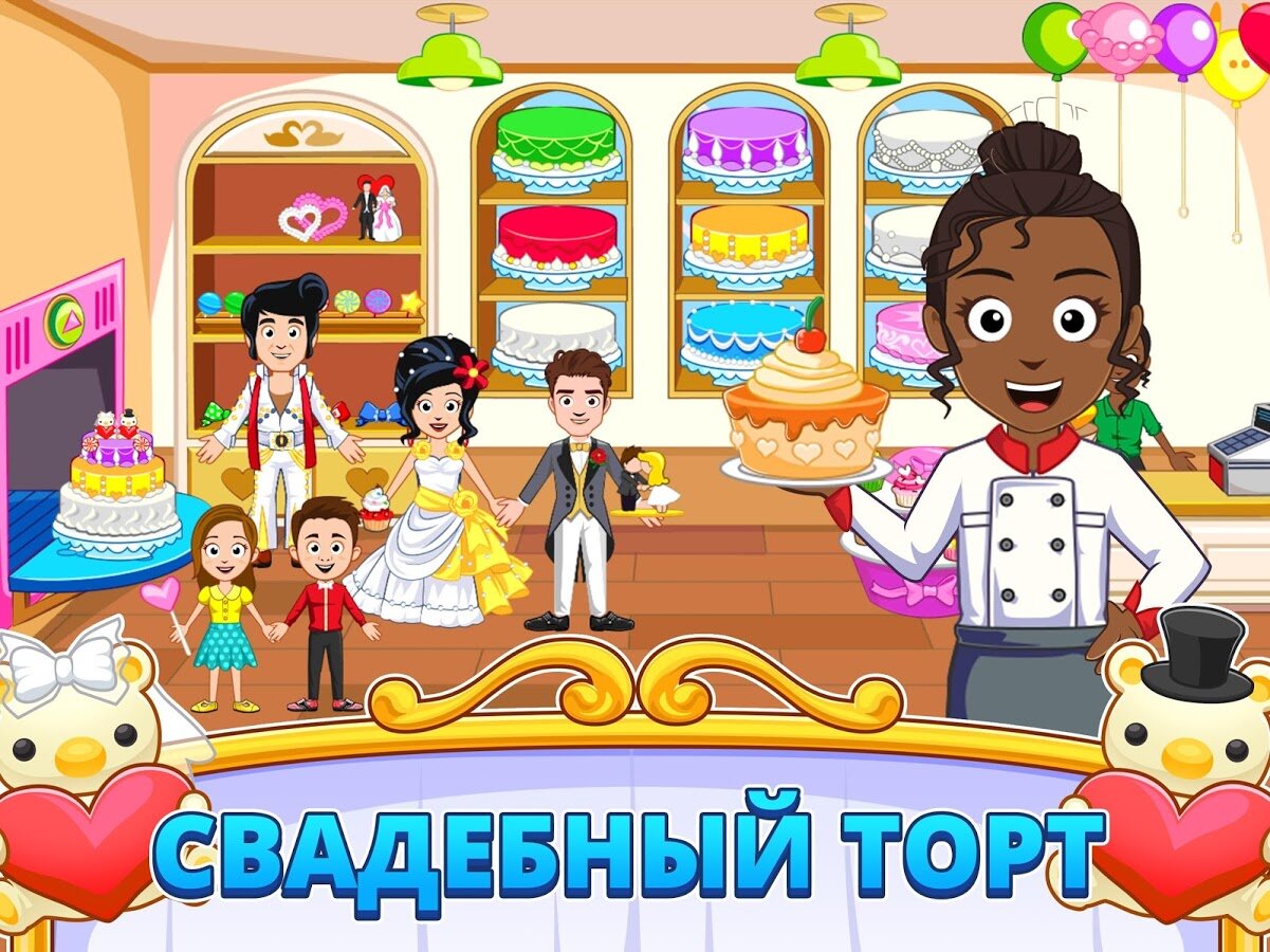 У игры в наш новый Мой Город — Свадьба есть идеальные места расположения, нужные для идеальной свадьбы. Кондитерский магазин, магазин подвенечных платьев, цветочный магазин и магазин подарков, церемониальный зал и свадебная вечеринка, расположенная на 100-м этаже!