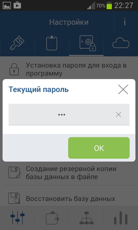 - установка пароля на вход в программу.