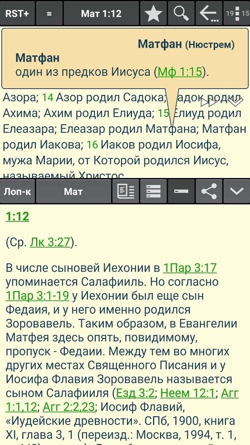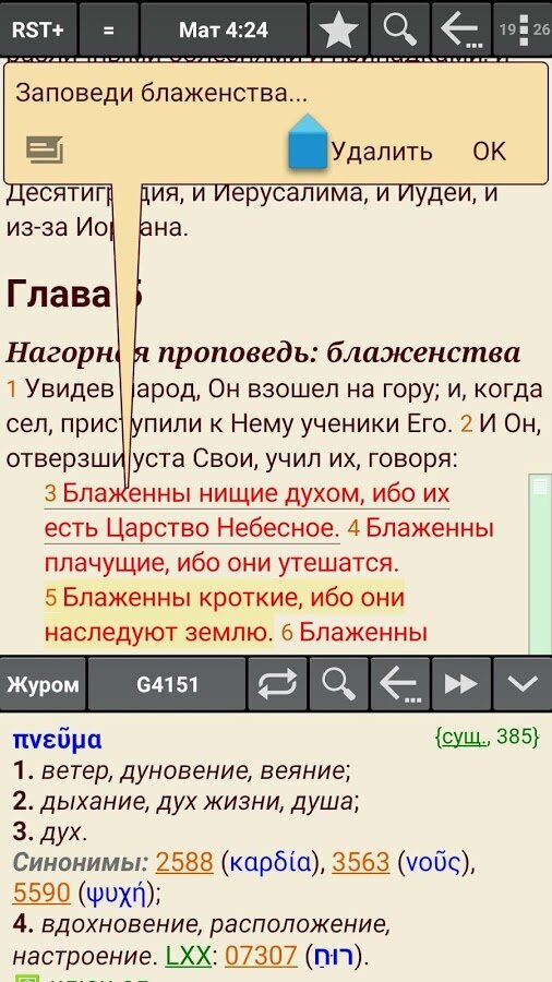 - Возможность одновременно открывать до 3-х окон, где можно сравнивать либо различные переводы, либо читать одновременно на нескольких языках, или просто одновременно открыть разные места в библии для сравнения.
