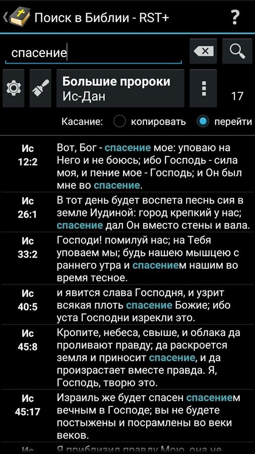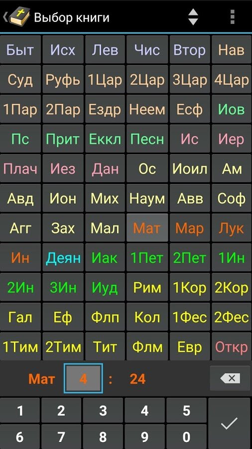 - Удобная навигация (все 66 книг библии отражены на одной странице, и не нужно долгое время искать нужную).