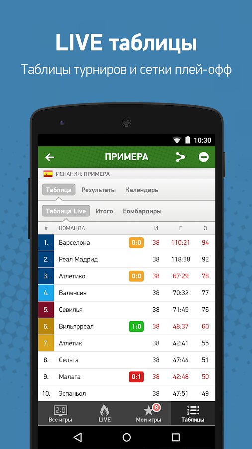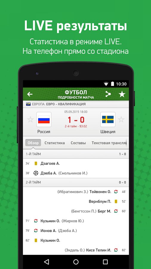Как только матчи будут приближаться, то вам заранее придет уведомление, чтобы вы успели подготовиться. Вы можете отслеживать все происходящее на поле по текстовым комментариям внутри приложения. Если вы хотите исследовать команды перед началом матча, то вы можете в любой момент посмотреть их состав и историю матчей, чтобы достаточно точно оценить исход встречи. Таблицы в живом времени будут показывать расстановку игроков.