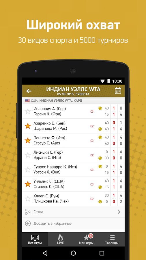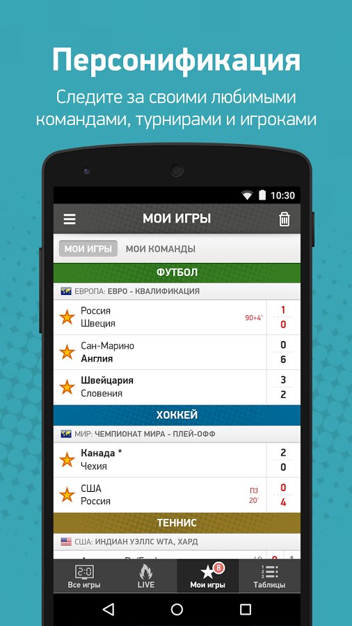 - Вам будут приходить уведомления о приближающихся матчей ваших любимых команд.