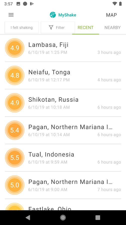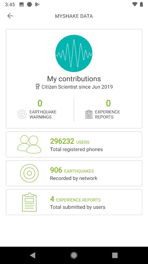 MyShake — использует акселерометры и другие датчики современных смартфонов и планшетов в комбинации со специальным алгоритмом. Последний отбрасывает обычные показатели акселерометра от вибраций и шума, которые исходят от эпицентра землетрясений. Разработчики уточняют, что датчики в современных мобильных устройствах позволяют определять землетрясения со значением магнитуды от 5 на расстоянии от 10 километров от очага.