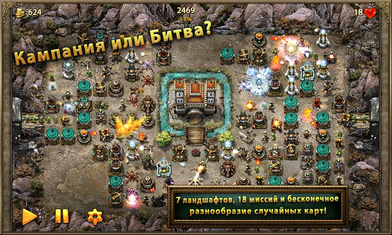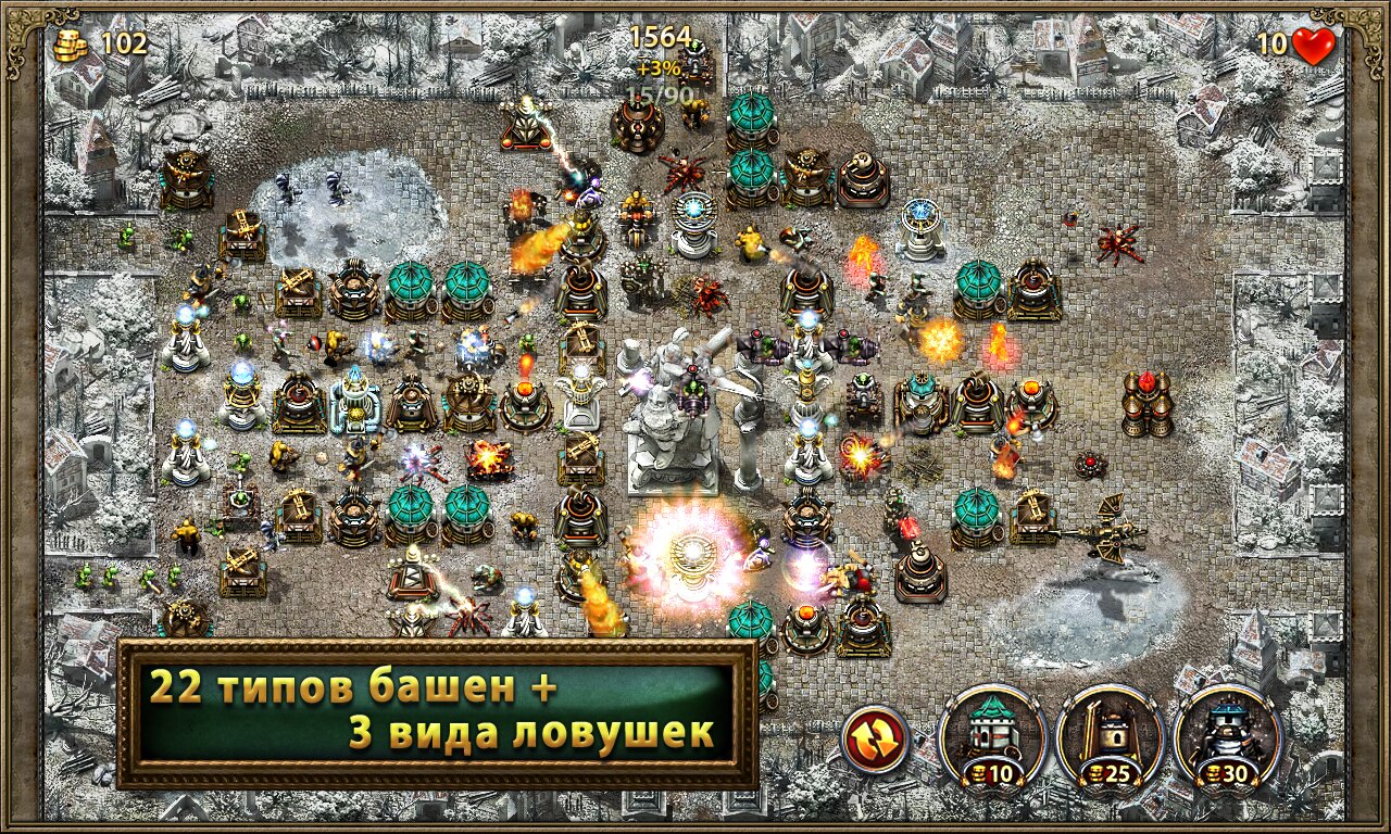 В нашей игре около тридцати интересных уровней. После прохождения каждого из них ты будешь получать награды и бонусы, полезные для следующих битв. После прохождения на новый уровень, тебе будет открываться доступ к новым картам. С помощью карты ты будешь управлять армией, да принципе карты и есть твоя армия. Множество типов башен и несколько видов препятствий. Проверь свои стратегические способности и логику. Есть два режима игры. Простой и для профессионалов. У каждой башни в игре есть свои особенные характеристики, так же, как и у врагов. Управление в игре очень простое справиться даже ребенок. В игре присутствует алхимия: ты можешь варить разнообразные зелья и делать волшебное оружие. Современная графика и яркие визуальные эффекты не дадут заскучать. Игра ведется в реальном времени с настоящими игроками.