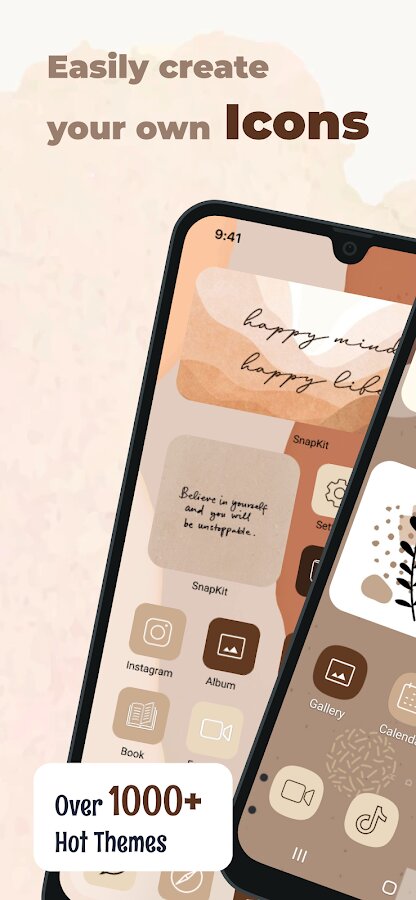 Используя MyTheme, вы можете менять иконки приложений на рабочем столе с помощью различных изображений, отражающих вашу индивидуальность и интересы. SnapKit предлагает широкий выбор красиво оформленных иконок, тем и скриншотов. С помощью функции настройки иконок вы также можете выбрать из альбома наиболее понравившиеся вам изображения и установить их в качестве иконок ваших приложений. Скачайте Themeit прямо сейчас, чтобы сделать свой экран новым и красивым!