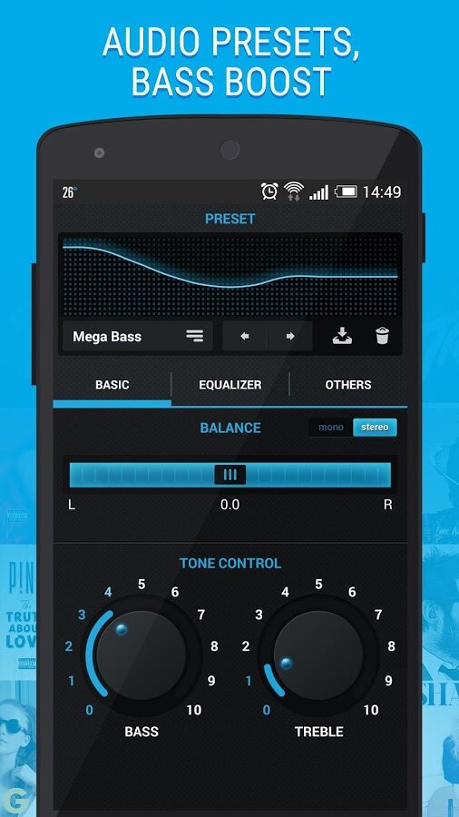 - 5-ти ступенчатый графический эквалайзер с пресетами, эффектами реверберации, басами и звуковой визуализацией (SRS/Dolby Surround, требуется версия системы 2.3 или выше).