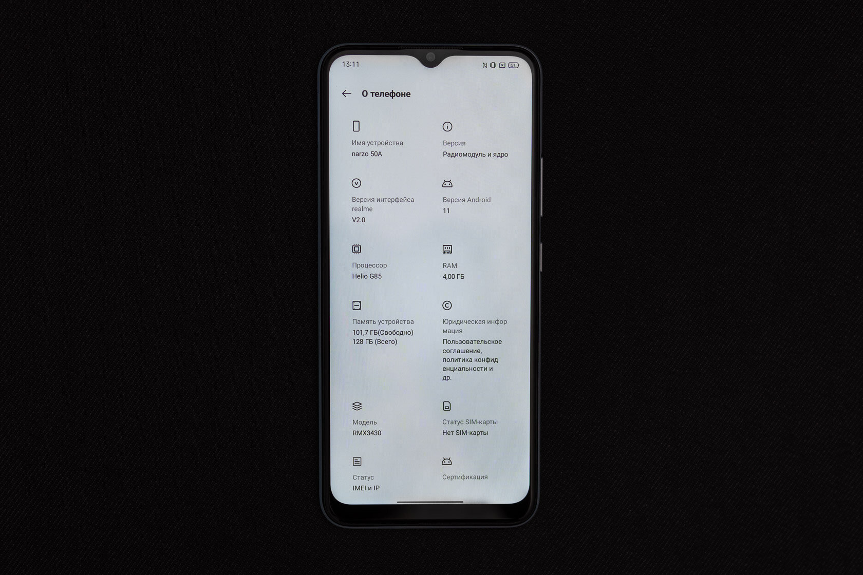 💡 narzo 50i — один из самых доступных смартфонов на конец 2021 года. Характеристики сбалансированы таким образом, чтобы предложить качественный корпус, хороший дисплей и шуструю скорость работы. То есть акцент сделан на комфорт повседневного использования.