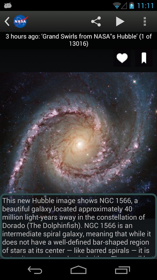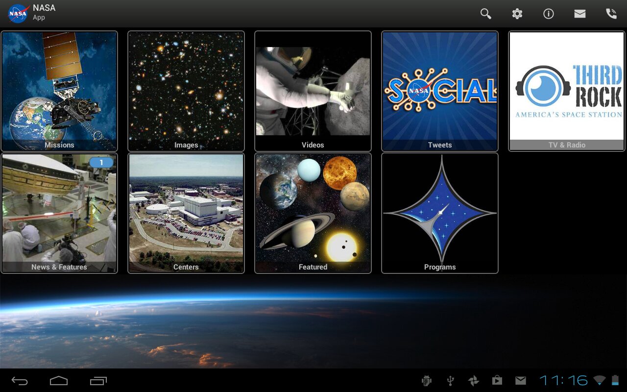 Nasa App — официальное приложение от Американской государственной компании Nasa. Приложение открывает доступ к фотографиям планет, видеозаписи, записи разговоров астронавтов. Для работы необходимо интернет соединение.